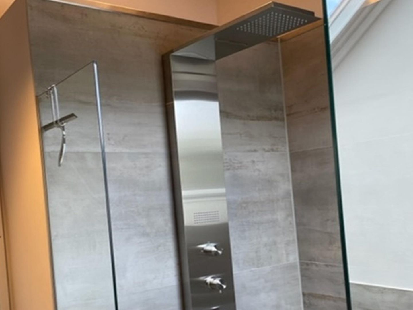 The bathrooms on this floor have a shower, bathtub and toilet.