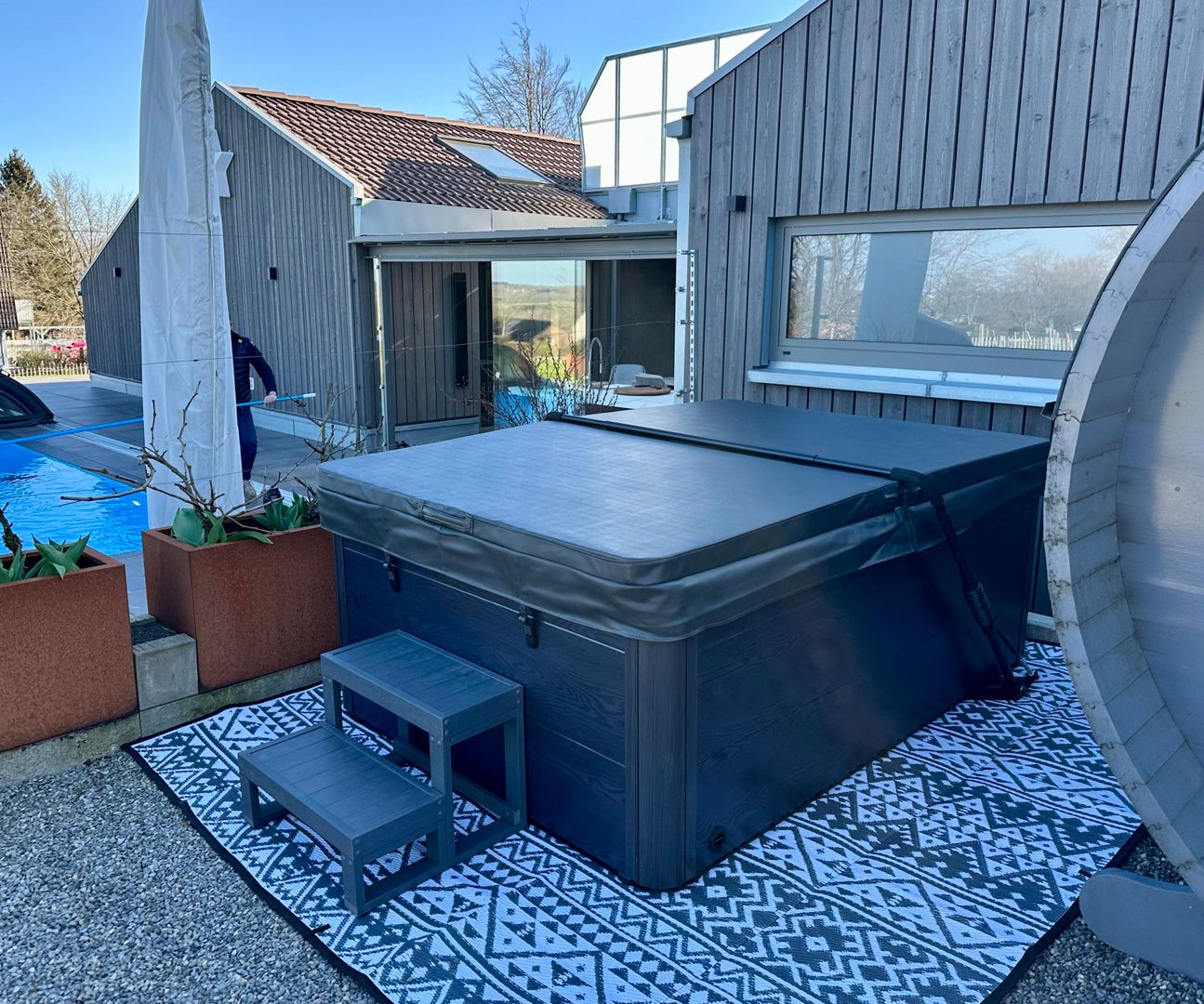 The outdoor sauna is available to all house guests free of charge.