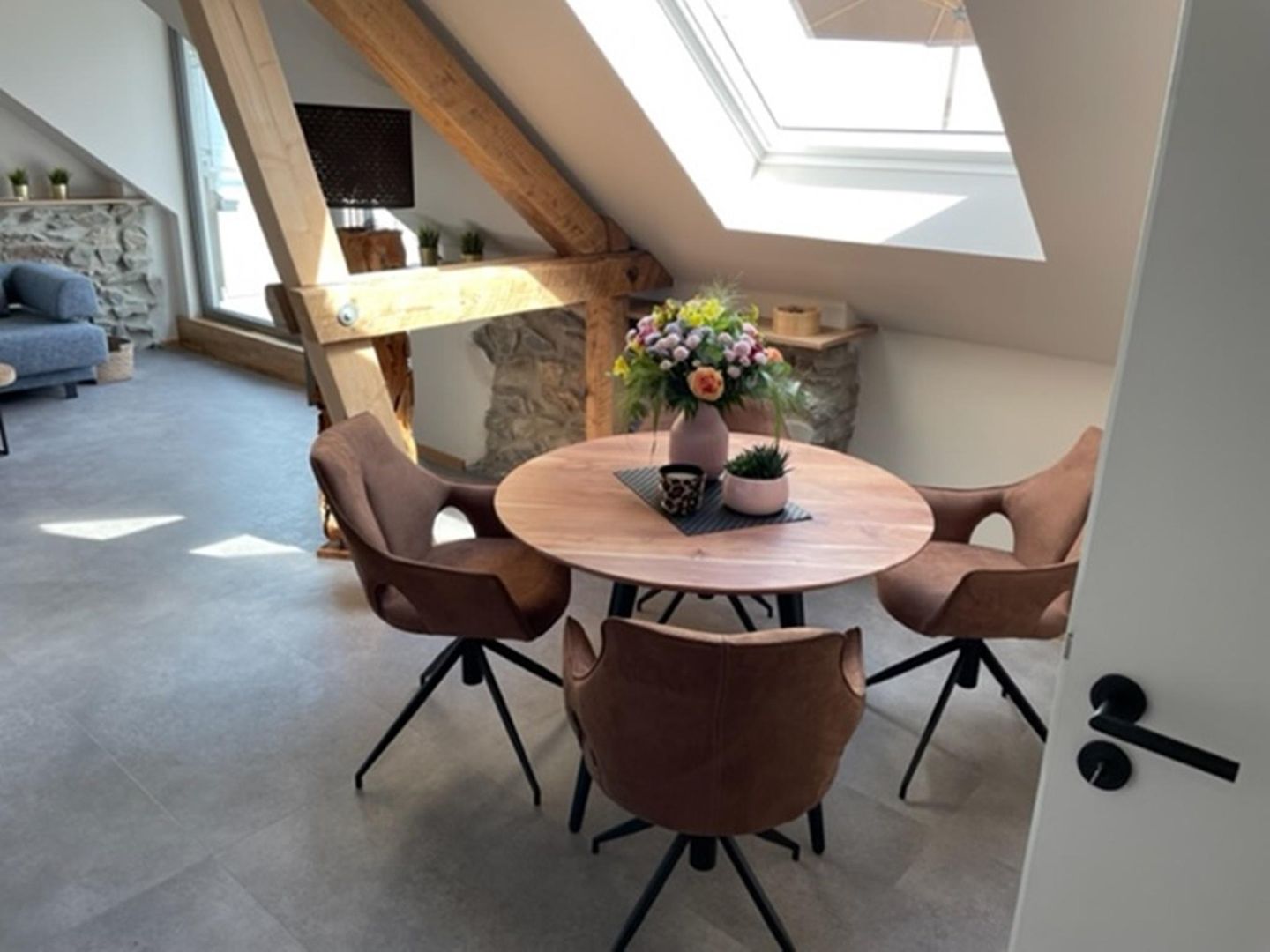 They are on the upper floor including the attic of the house and each apartment has 60 m² of space for up to 4 people.