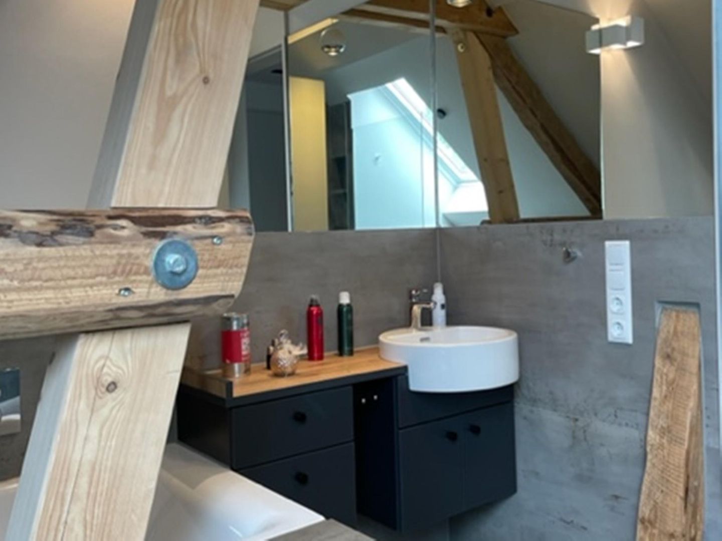 The bedrooms with a double bed and satellite TV are on the attic floor.