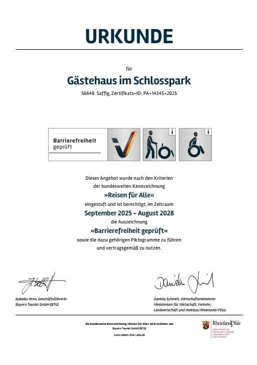 The guest house in the Schlosspark of the Barmherzige Brüder Saffig is an inclusive establishment and a meeting place for people with and without disabilities. Whether you are a vacation or conference guest, you will feel welcome in the special atmosphere of our house. Our guest house is open to everyone.