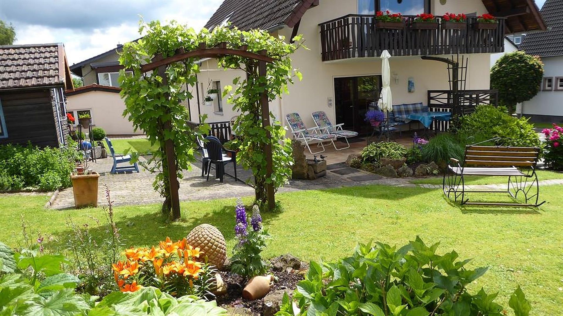 Dear guests, welcome to the Eifel! Our holiday apartment is an ideal spot to discover the natural beauty of the unspoiled Eifel landscape within the heart of Europe. You will find both near and far lovely walking and hiking trails, large forests, and magnificent valleys, two natural parks, many castles, modern leisure facilities and excellent cycle paths. Founds of million years old fossils are not uncommon in this region. Extinct volcanos, volcanic gardens and museums explain the history of this extraordinary landscape. Further highlights are readings of the Eifel crime stories and the Eifel literature festival. Welcome to Lissendorf within one of the most beautiful regions of Germany! Lissendorf offers various shopping facilities, bus and rail connections, a bank and a post office, a doctor’s surgery and pharmacy, a riding stable and a playground. Welcome to our apartment! Our apartment is located within a beautiful garden with a BBQ area, table tennis and a tree house waiting to be discovered by your childs. The apartment measures 79 m² and lies on the ground floor with a large living room with TV and HiFi system, free WLAN and unhampered view of the garden. Its large terrace is equipped with deckchairs inviting to relax in the sun. Fully equipped kitchen with dining place, fridge with freezer, electric cooker with oven, microwave, dishwasher, toaster, coffee maker, egg cooker, water cooker, sufficient amount of dishes, glasses and cutlery. Bathroom with walk-in shower, hand and bath towels, cosmetic mirror, hair dryer and bathrobes The beds in the sleeping room can be separated on request. Bicycle stand in the garden shed. Separate entrance and parking lot.