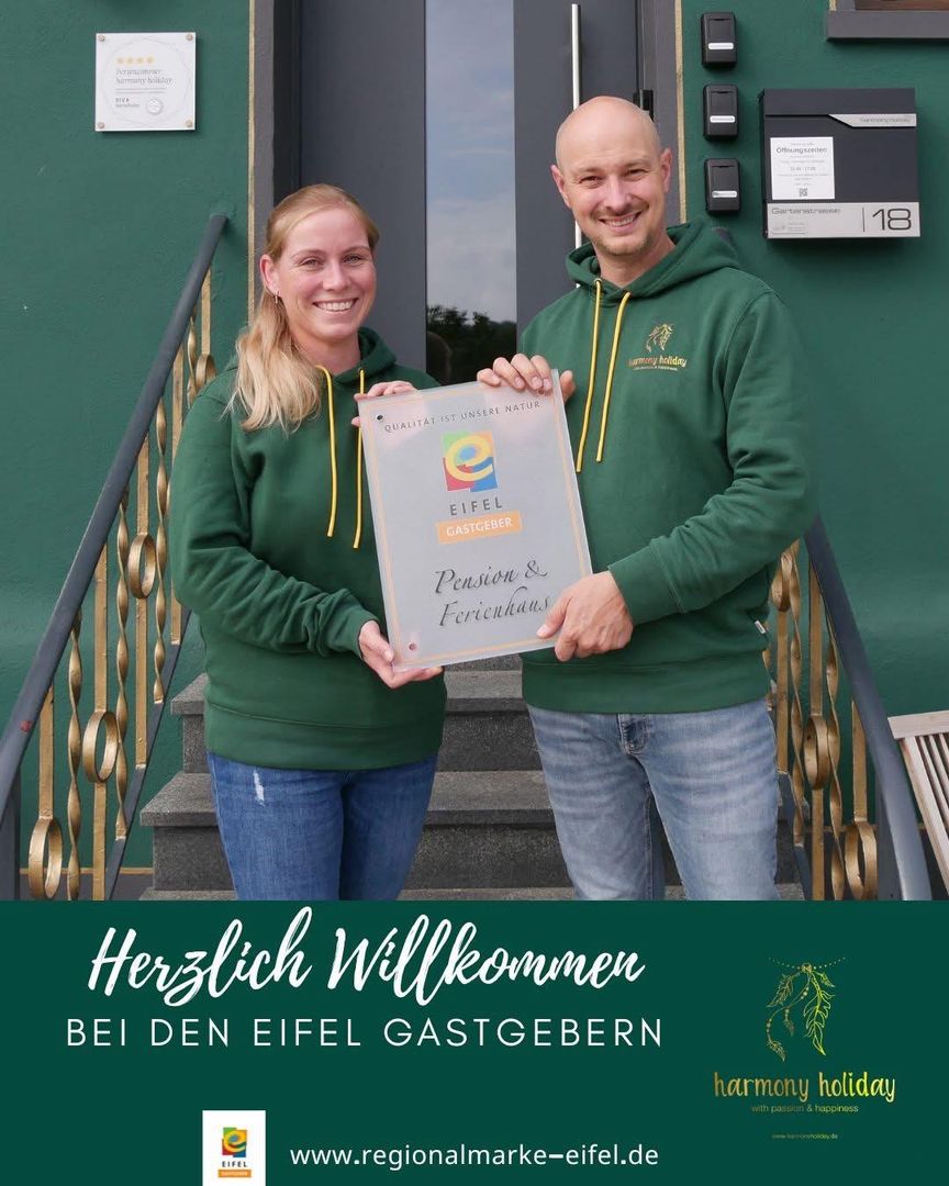 This is not just a name, but something we live by. Our vacation accommodation with its ambience, the surroundings, the services and our care, that is "harmony holiday", that is passion, dedication, love and harmony from A to Z. A holistic concept to take a deep breath, switch off, relax, have fun and discover. Our rooms & vacation homes, with their idyllic location in Kerschenbach, invite families, couples or single travelers to enjoy a relaxing vacation in the Eifel. Whether hiking, cycling, going on excursions or simply unwinding, everything is possible here.