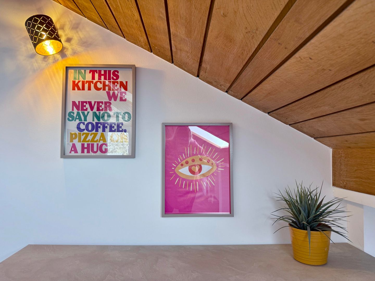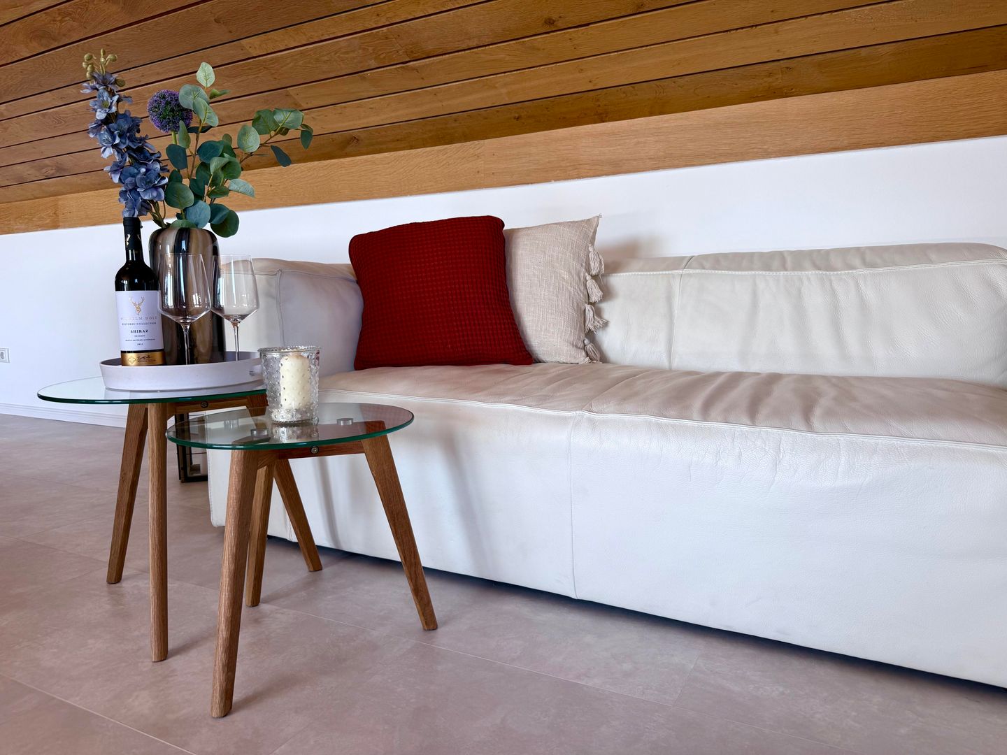 This charming vacation apartment is located on the upper floor of the house and is accessible via a separate entrance. An elegant spiral staircase leads you up to all the rooms, which are located on the top floor of the house.