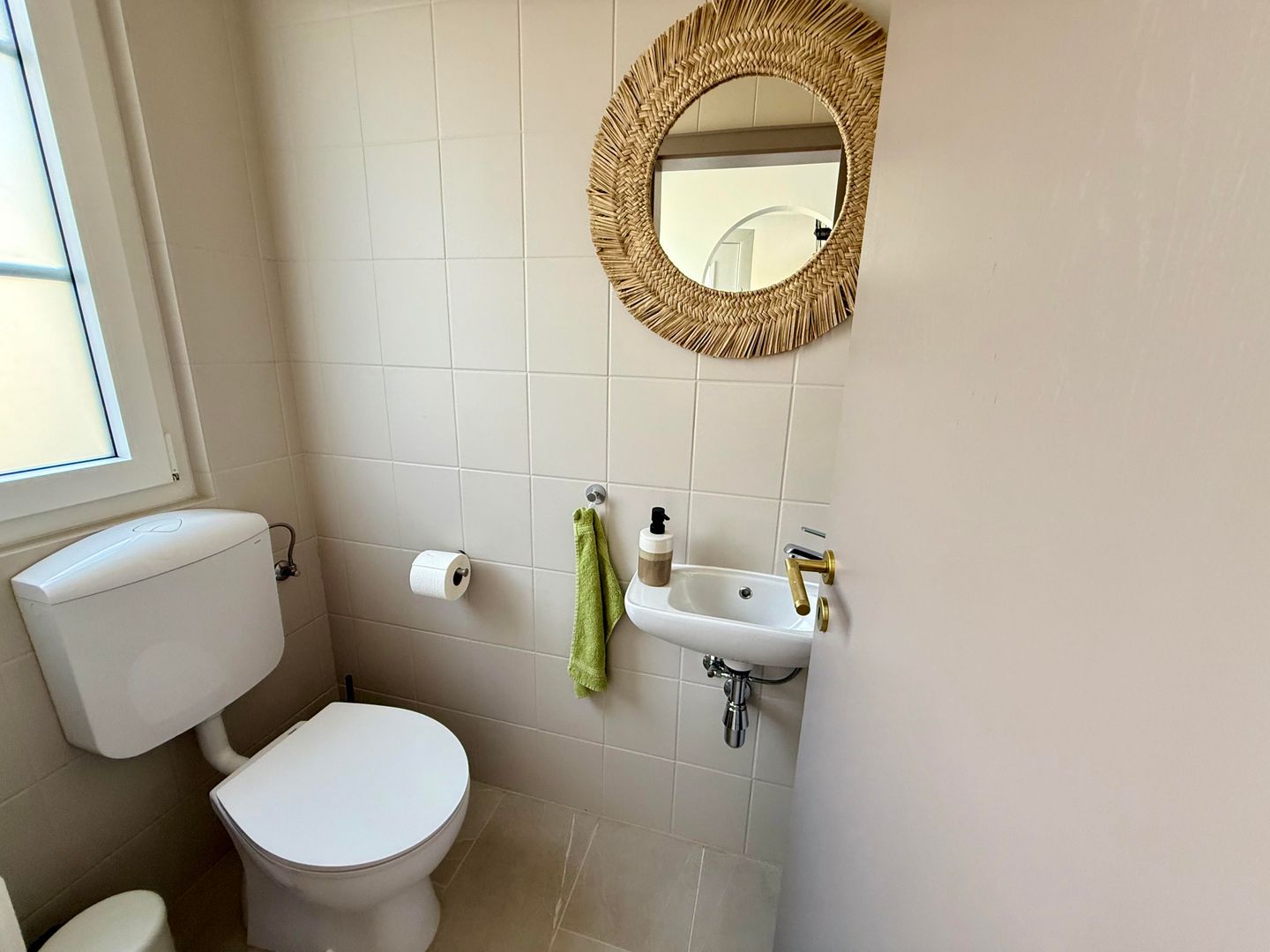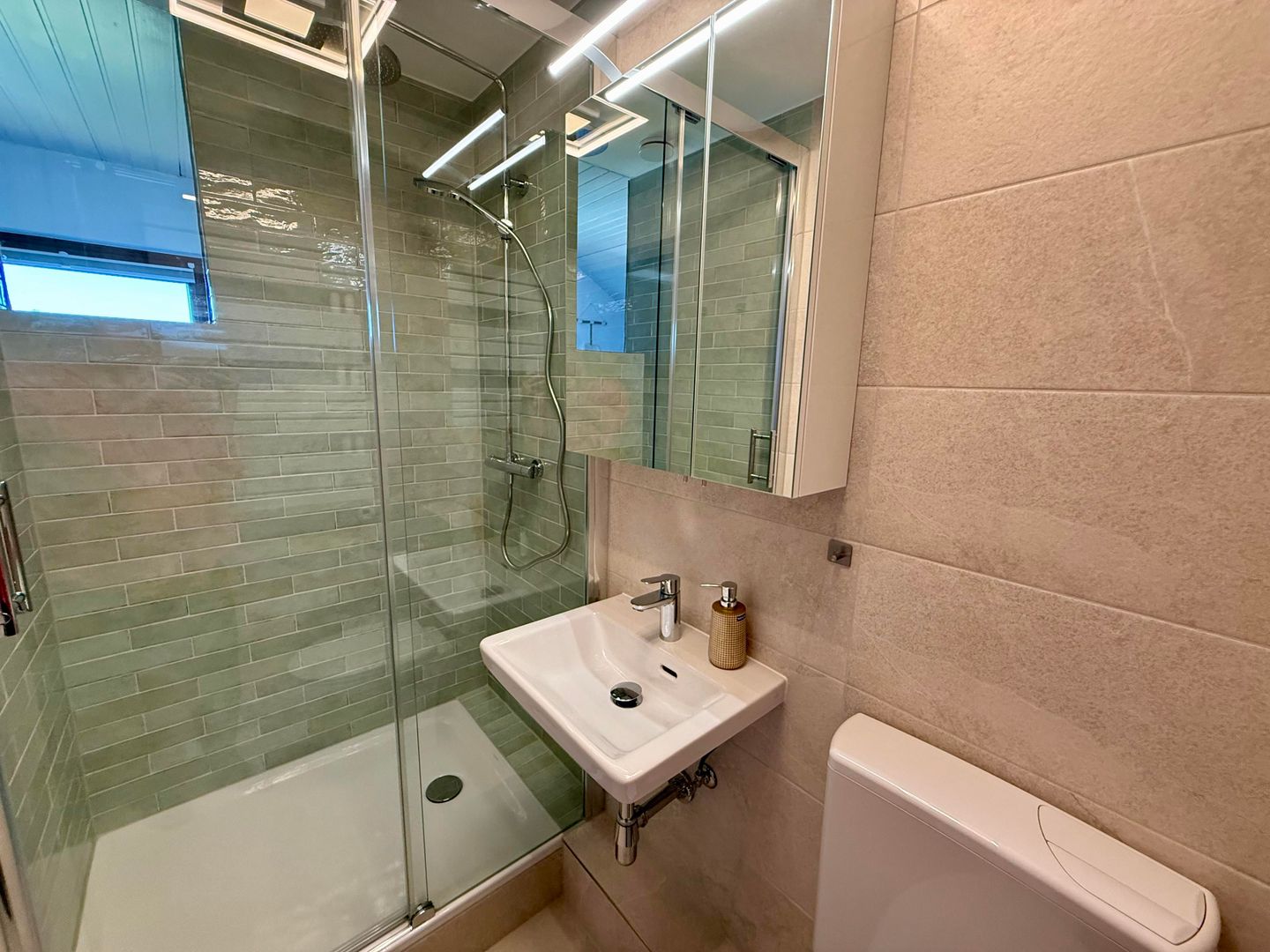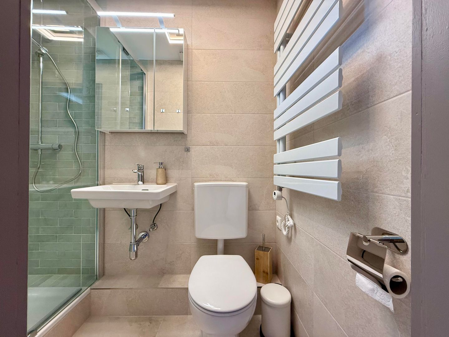 The modern kitchen leaves nothing to be desired: it is equipped with a dishwasher, an oven, an induction hob, a fridge with freezer compartment and a Senseo Twist coffee machine.