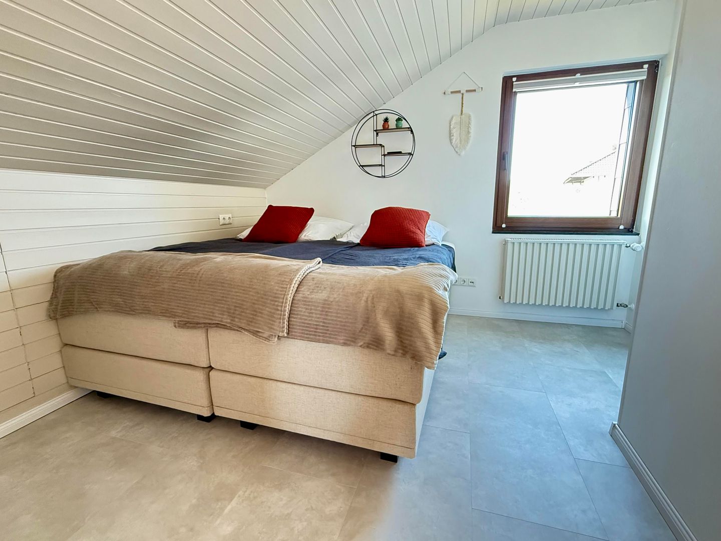 The cozy bedroom under the sloping roof has a comfortable double bed (180x200cm) with high-quality mattresses.