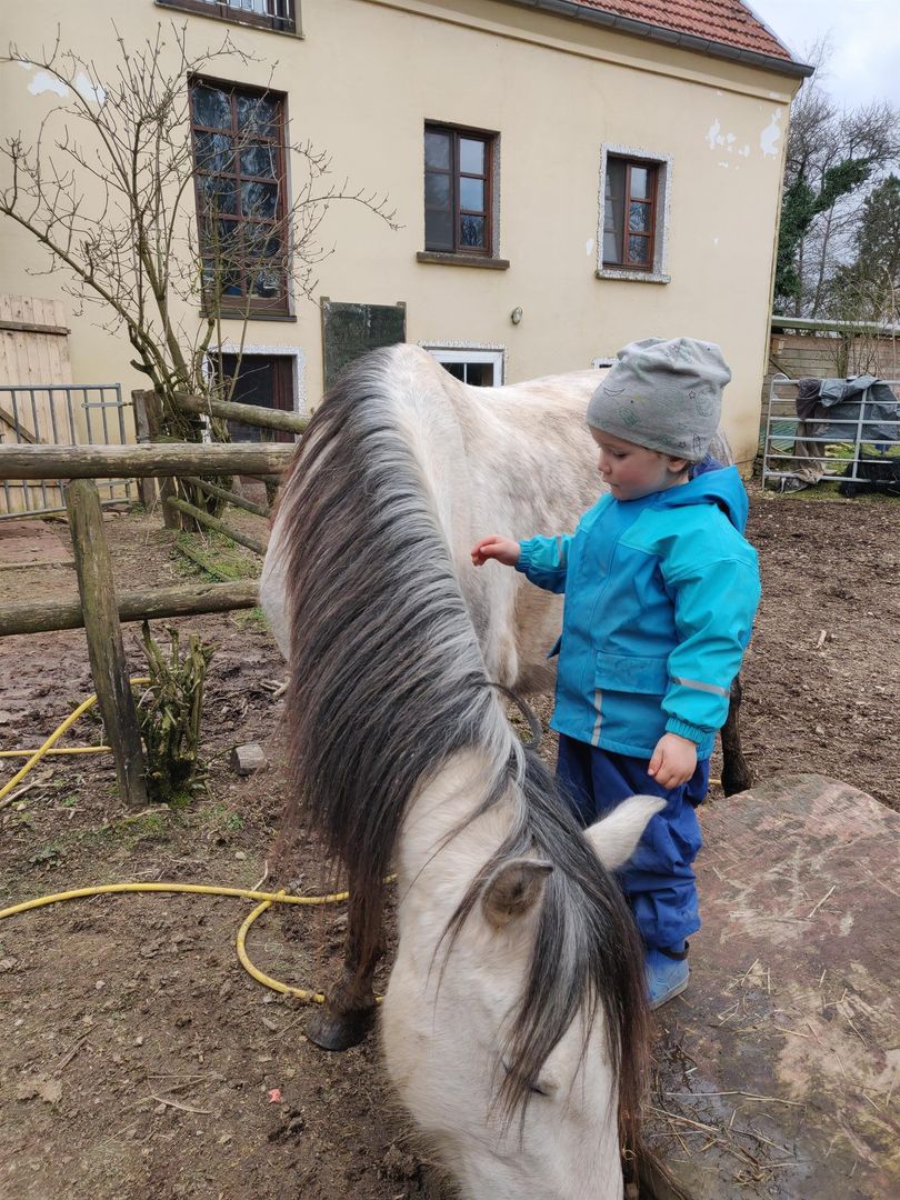 Comfortable non-smoking vacation apartment in a sunny, quiet location on the edge of the village. Right on the edge of the forest. Wood-burning stove in the living room. Our 6 horses/ponies are used for therapeutic riding, with a focus on the work of Moshe Feldenkrais.