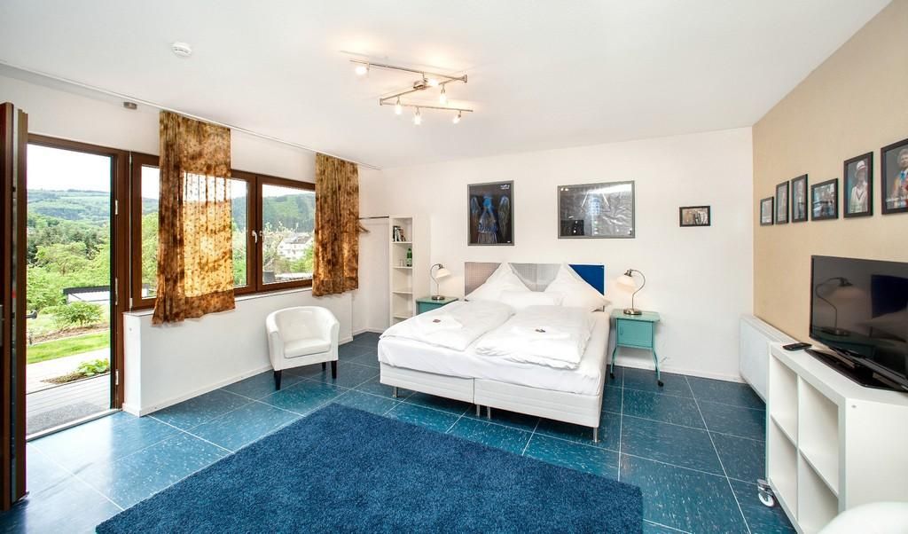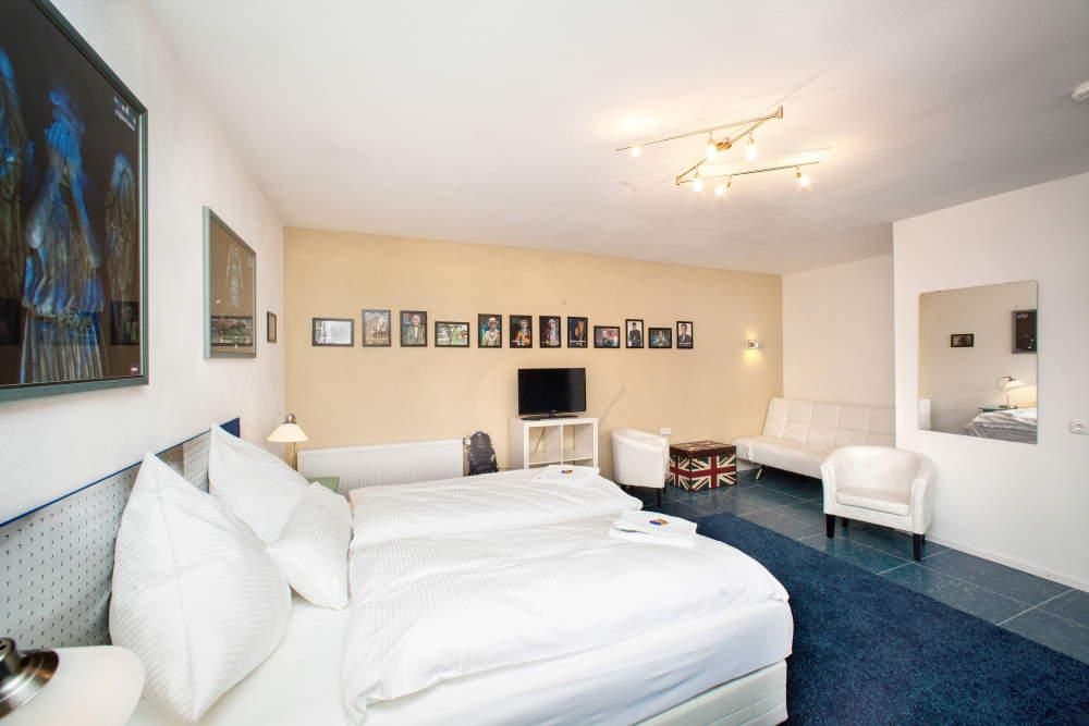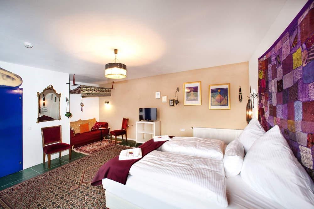 Completely renovated in 2012, family-run hotel with a literary theme. Family rooms for up to five people, large garden, garage for bicycles. Dogs welcome. Café with homemade cakes, small snacks in the evening.