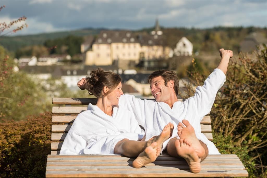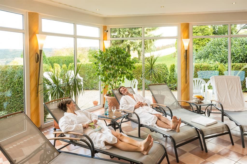 Our wellness oasis offers a special flair on 450 m². It has a swimming pool (approx. 32 ° C), whirlpool, Finnish sauna, oriental steam bath, tecaldarium, mint steam bath, experience showers, soft pack couch, light bubble bath, relaxation room and lawn - a delight for body and soul. Visit our restaurant between meadows, forest and clouds.