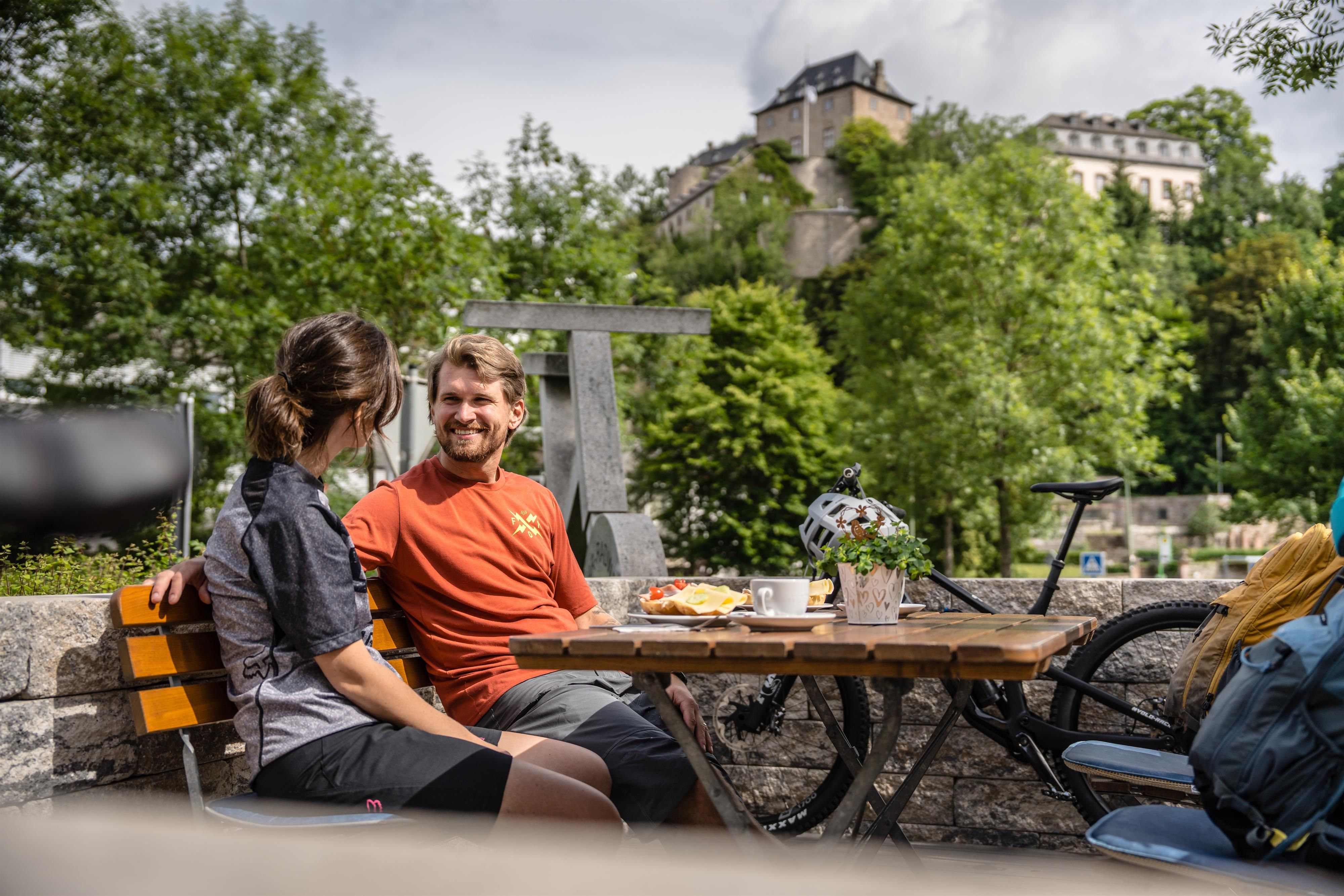 Comfortable rooms with shower/WC, telephone, hairdryer, some with minibar, balcony. Newly designed breakfast room with castle view, rich breakfast buffet, with vegetarian offer and muesli / grain corner. Discover EIFEL specialities for your heart and palate, delicious ice creams and great sundaes, cakes from the pastry shop Blasius from Birresborn, coffee specialities from organic and fair cultivation and to finish off with a schnapps from Eifel meadows, in our newly designed café, right next to the hotel.