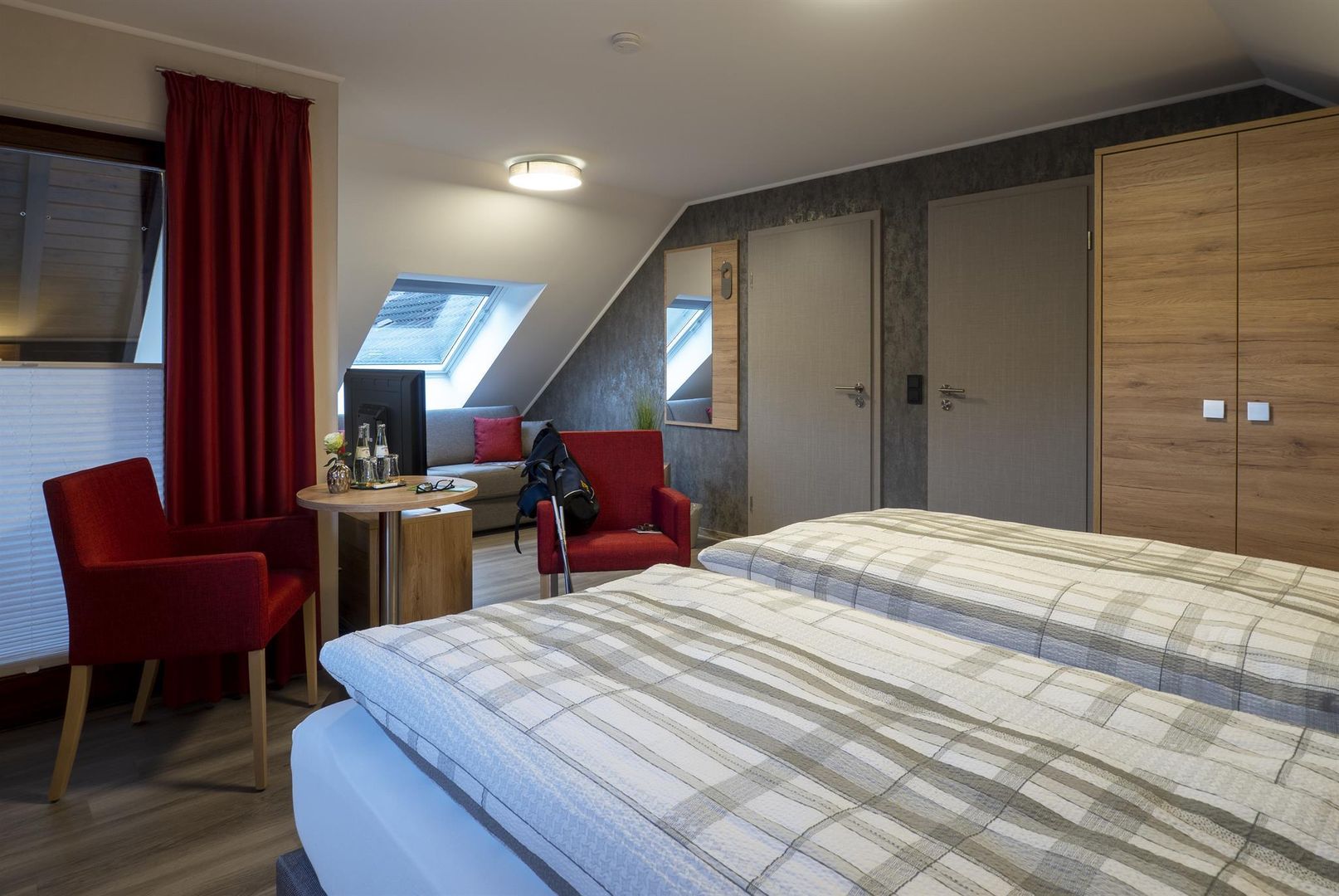 Run by our family for generations, the hotel offers comfortable rooms with shower / WC, TV, balcony or terrace. Child friendly with a play area in the restaurant and a large in-house playground with volleyball court and football goal. Rich menu with venison specialties from local forests. Vegetarian cuisine. Hiking possibilities directly from the house. Bikers and cyclists welcome. Pets are not allowed. Free garage for bikers and cyclists.