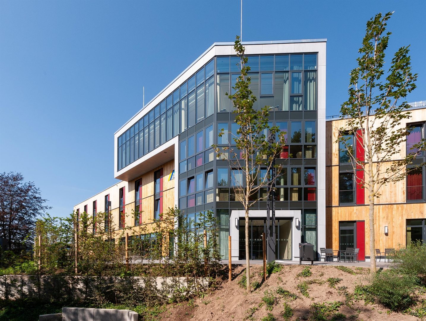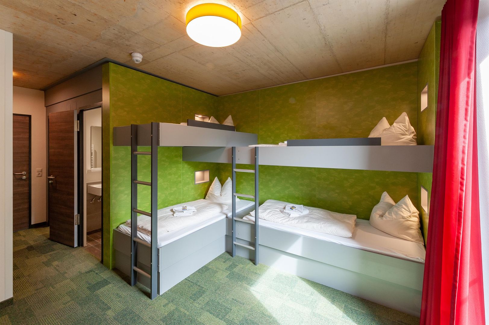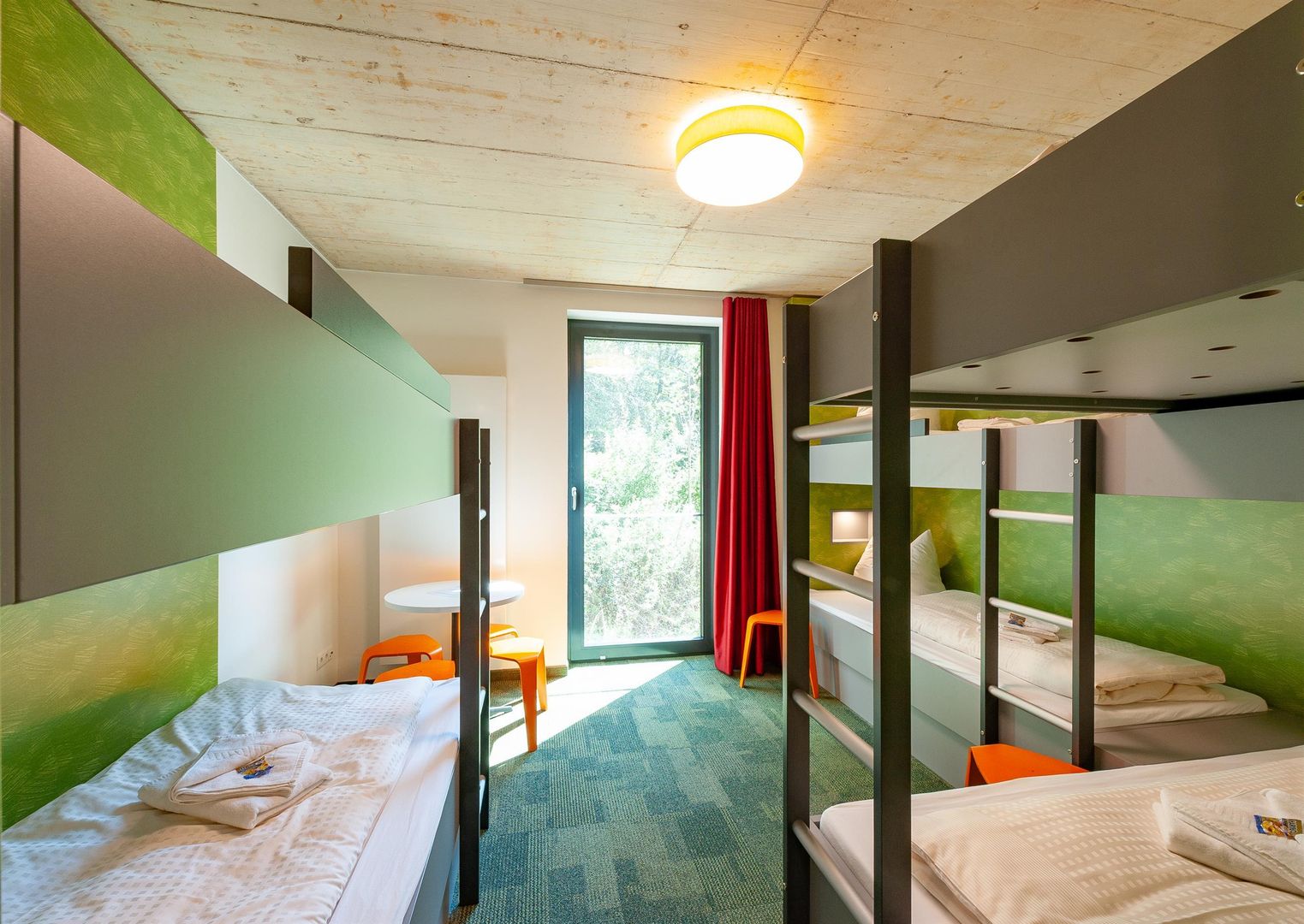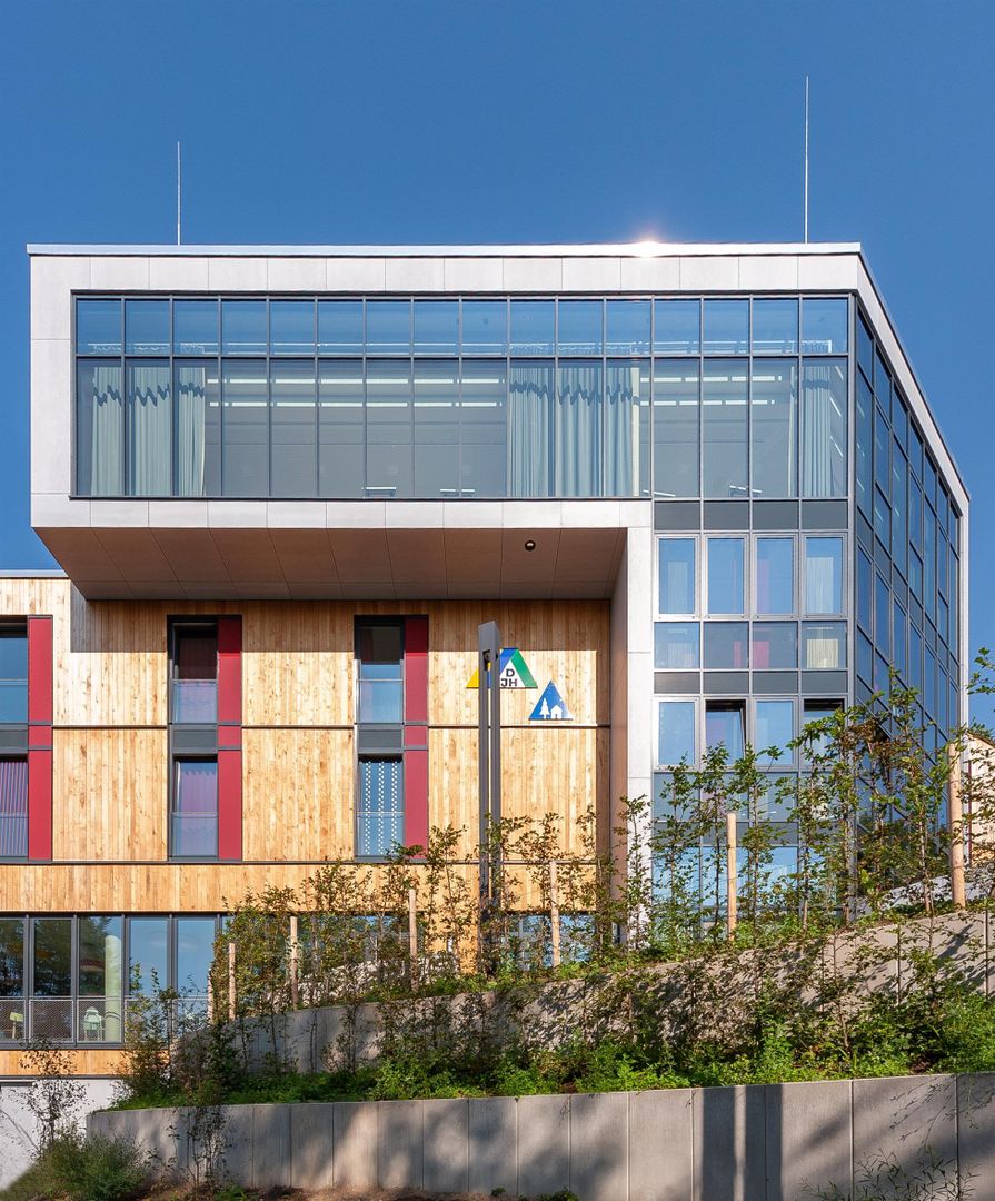 Nestled in a valley rich in forest and water, in the Eifel National Park, the building with its impressive wooden façade and large transparent window areas fits perfectly into the surrounding nature. The youth hostel is one of the certified national park hosts and is thus the ideal base for numerous outdoor activities.