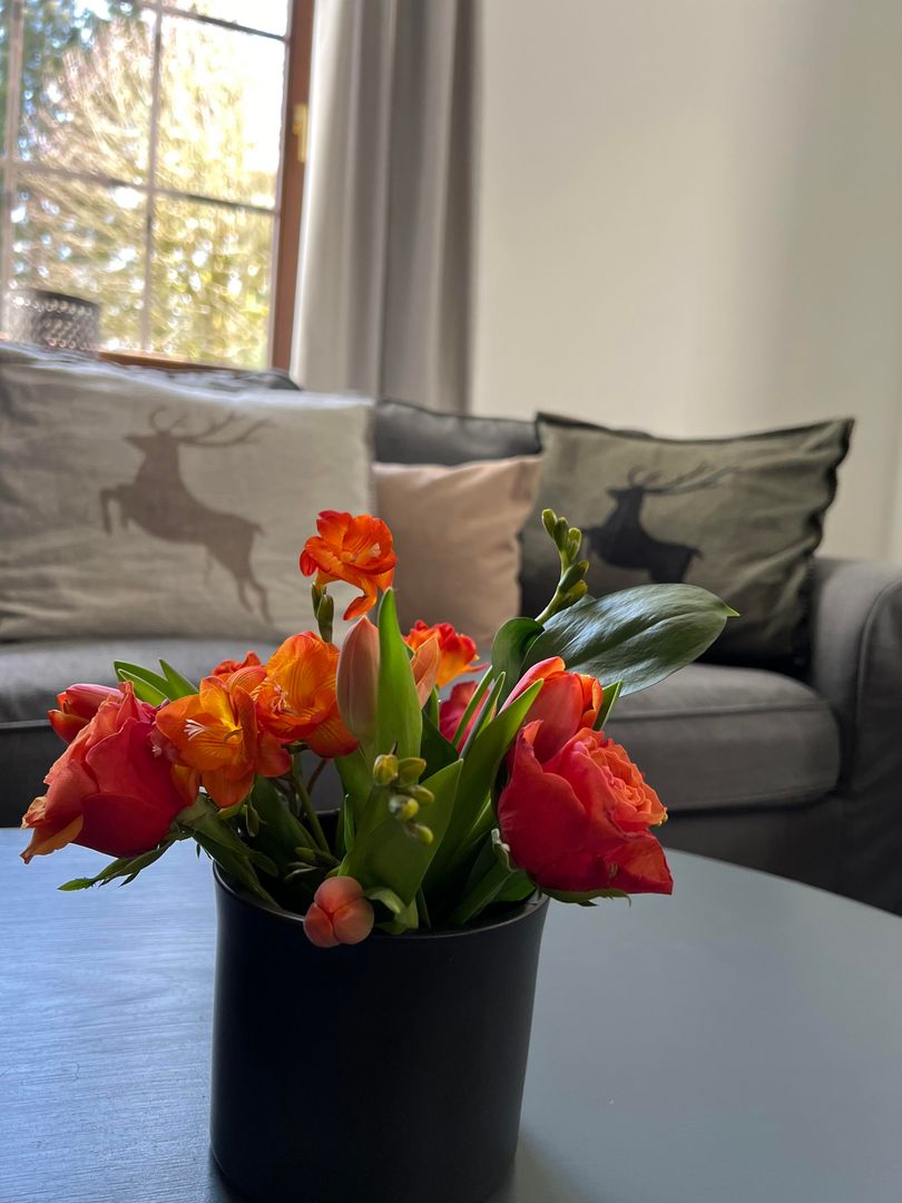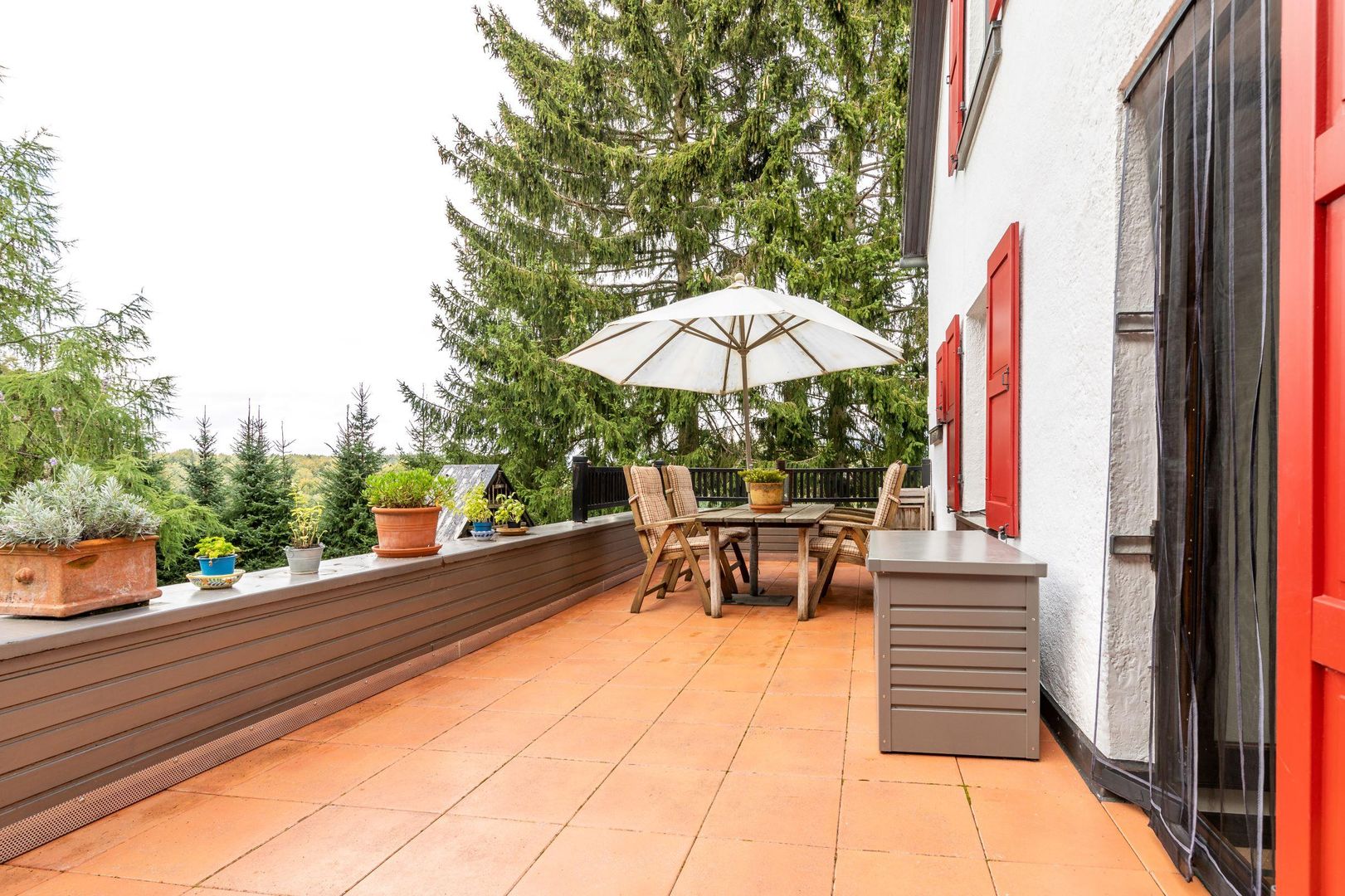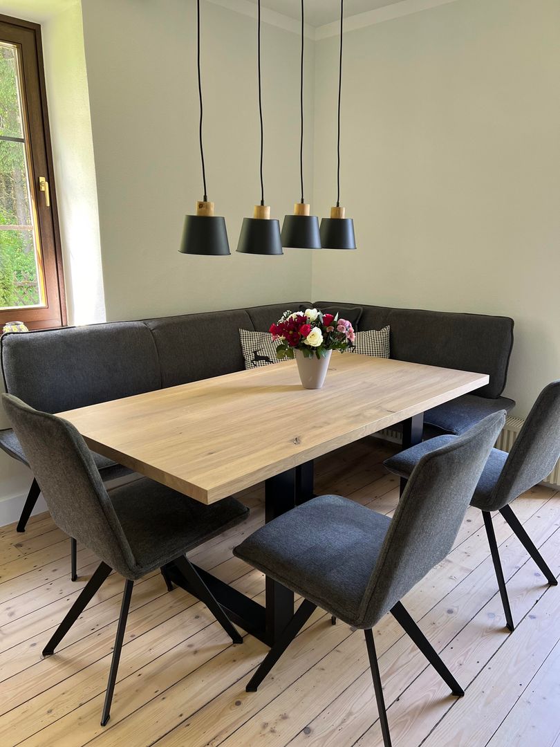 In the outdoor area, you will find a spacious garden with a bench, two loungers, and garden furniture, as well as a terrace that is also equipped with garden furniture, a sun umbrella, and a grill. With good weather, nothing stands in the way of a shared barbecue with a view of the greenery. The property is fenced and therefore also suitable for children and dogs. Cars can be parked free of charge on three private outdoor parking spaces. Pets are warmly welcome upon request.