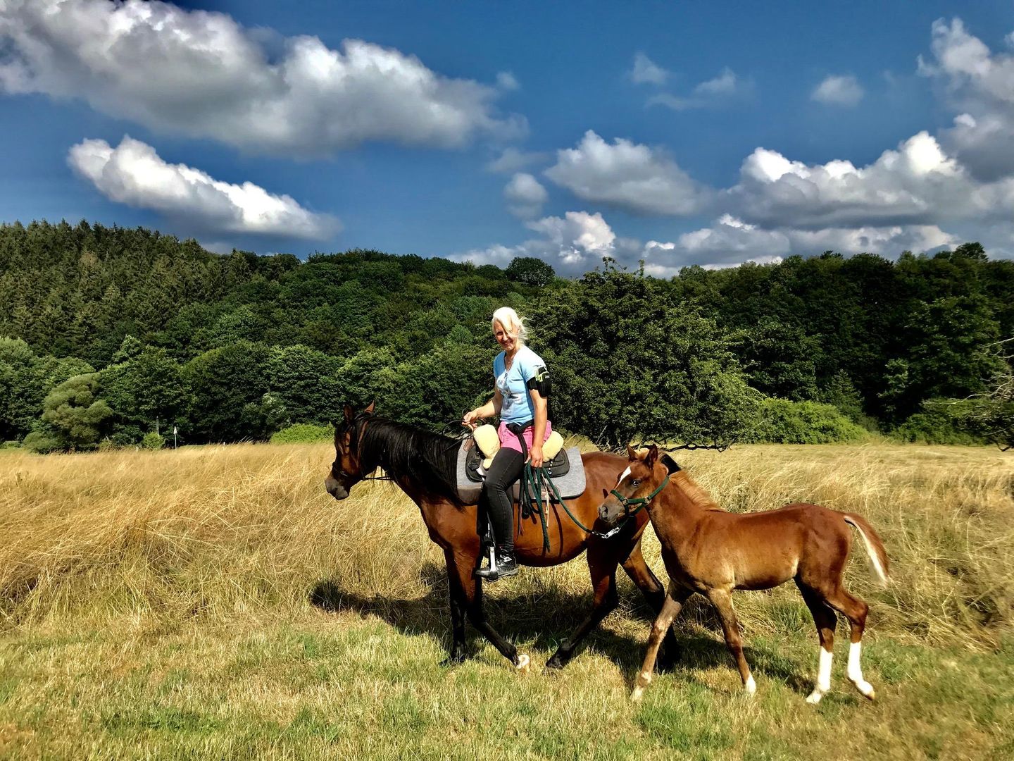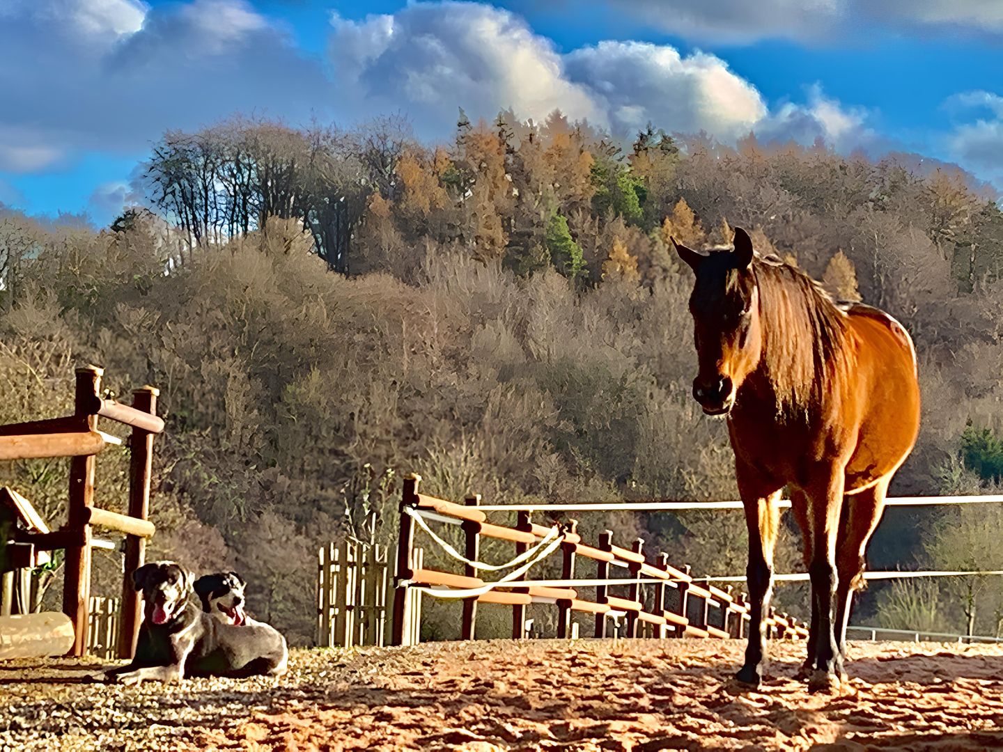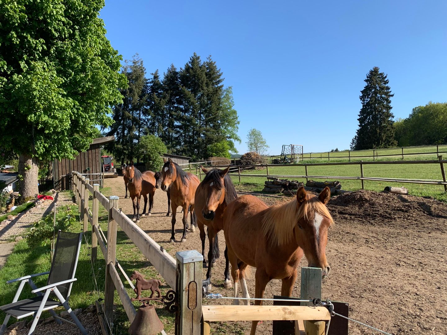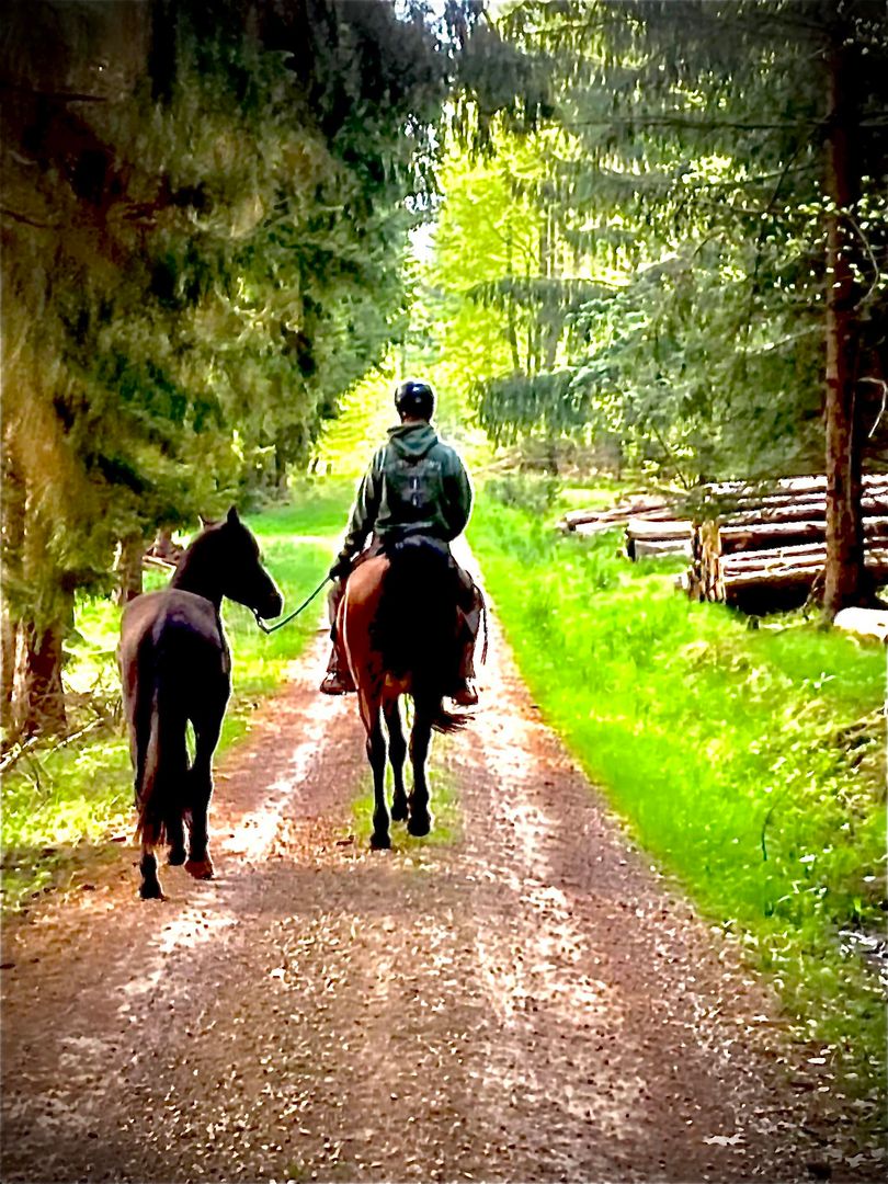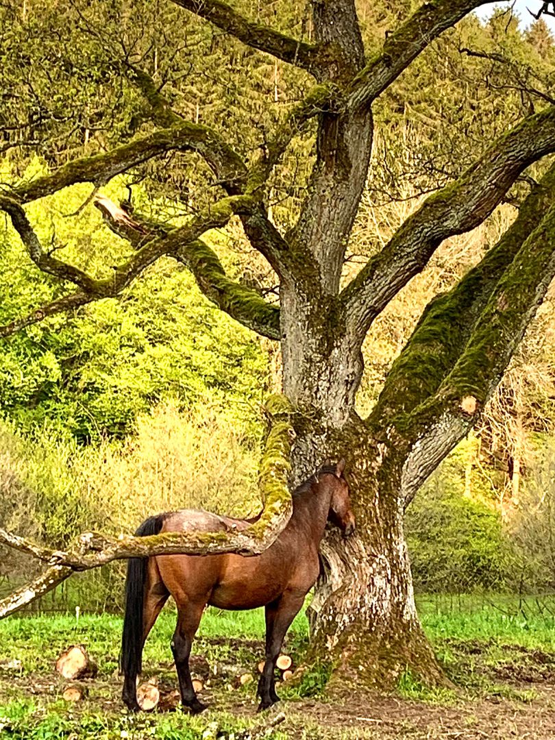 If you want to spend your vacation with your horse, this is possible in consultation and at extra cost. Our own riding arena (approx. 18 x 25 m), a meadow paddock with a shelter and Eifel hay are at your disposal. The beautiful riding area with a variety of possibilities is waiting for you right outside the front door.