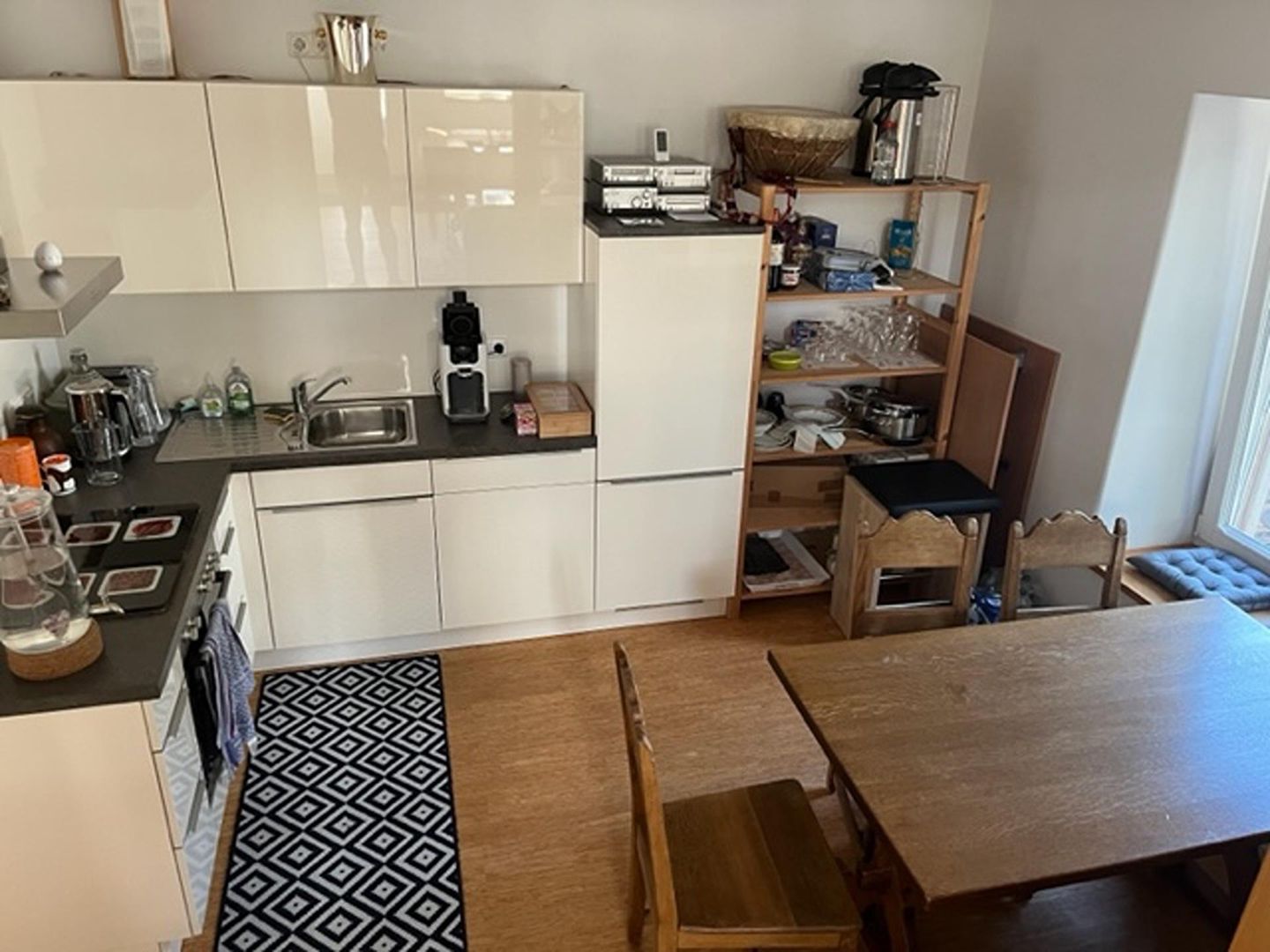 The kitchen is also equipped with a whisper-quiet dishwasher, stove with oven, kettle, Senseo coffee machine and a fridge with freezer compartment. If required, a waffle iron, blender, etc. can be provided.