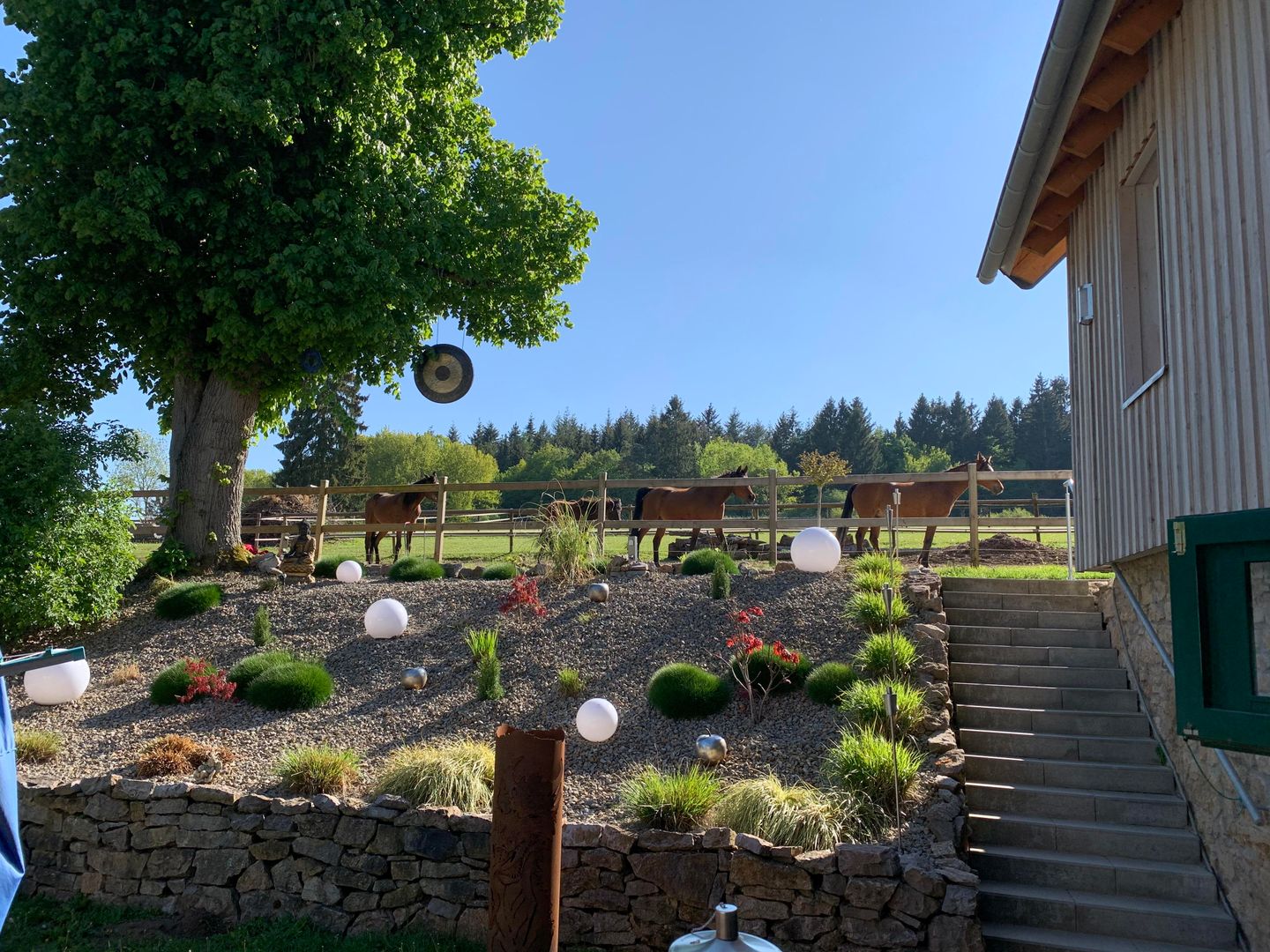 The LichtRaum vacation apartment is accessible via the outside staircase. The horse stable and tack room are located under the LichtRaum.
