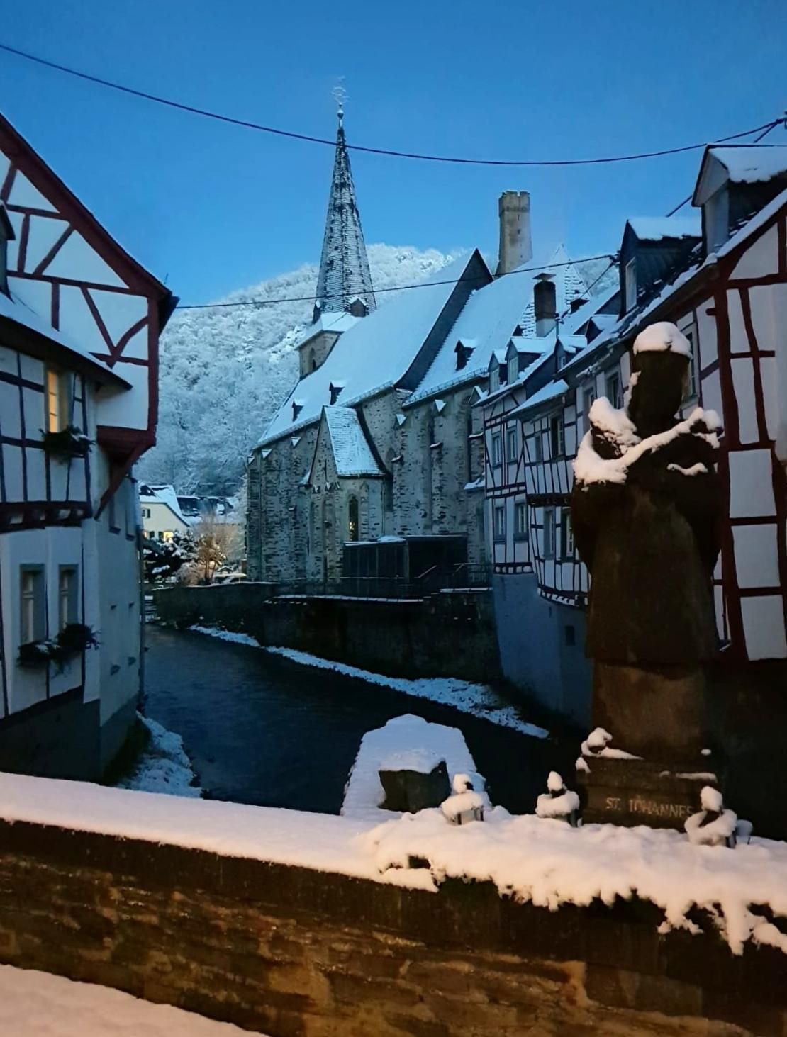 Spend a nice, relaxing holiday in our cozy, comfortably furnished holiday apartments or in the bright, spacious guest room with a double bed. All units have balconies on different levels. There are parking spaces and a garage for a fee. In summer there is a grill fireplace as well as an outdoor seating area with a parasol and a pavilion. We have wireless internet access in all rooms. Our house is about 40mtr. away from the bike path and the access path from the premium hiking path (Traumpfad Monrealer Ritterschlag). The approx. 100mtr. distant mixed forest that invites you to take a walk, as well as the historic center of Monreal. Our house is approx. 250 m from the historic center with its beautiful half-timbered houses, which offer a wonderful backdrop on the Elz stream, the late Gothic church and the medieval stone bridges. The two castles (Phillipsburg and Löwenburg, which can also be climbed) are visible from afar and towering high above the old town center. The gastronomy in Monreal includes 2 restaurants and 2 cafes and a bakery only on Saturday mornings. There are walking and hiking trails We have many in Monreal, (Karbachweg, Eifelkamino, Jakobsweg, 7 hiking trails from the IVV, the dream trails of the Eifel, as well as the Elztalwanderweg to the Moselle. We can also provide maps to these with us. In the surrounding area you will find our beautiful shopping town Mayen with the Genovevaburg with the Eifel Museum, Bürresheim Castle, Lake Laacher See with the Maria Laach Monastery is 20 km away. Eltz Castle, which was never destroyed, is 28 km away (Wierschem car park). The volcano park with lava dome, Wingertsbergwand near Mendig and the visitor mine Meurin in Kretz. Furthermore, in the vicinity you will find the Nürburgring, the Ahr, the Moselle, the Rhine near Koblenz, the Maare near Daun, Meerfeld and Gillenfeld incl. lava bomb in Strohn. Hikers, cyclists and motorcyclists are also very welcome and welcome guests.