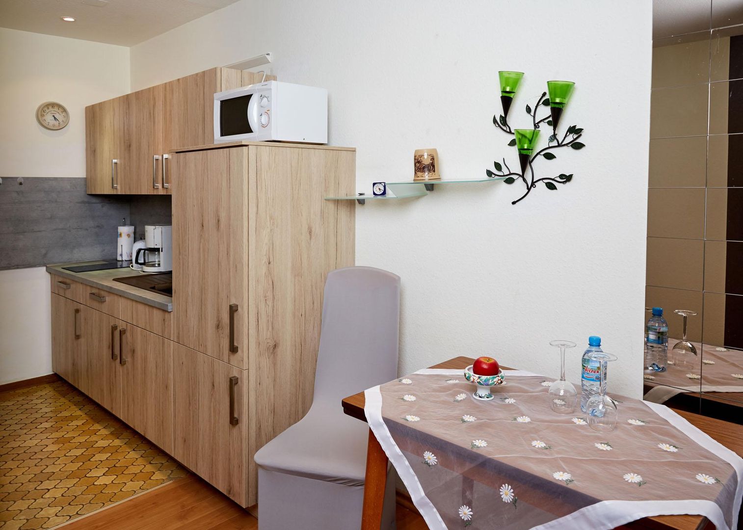 Under the motto "This is how our landscape tastes", our kitchen meets the right taste for everyone. Maybe let yourself be pampered in our wellness area with relaxing massages and cosmetic treatments? Use the sauna with the attached relaxation room. In the immediate vicinity, in a quiet location, our apartment house offers every comfort.