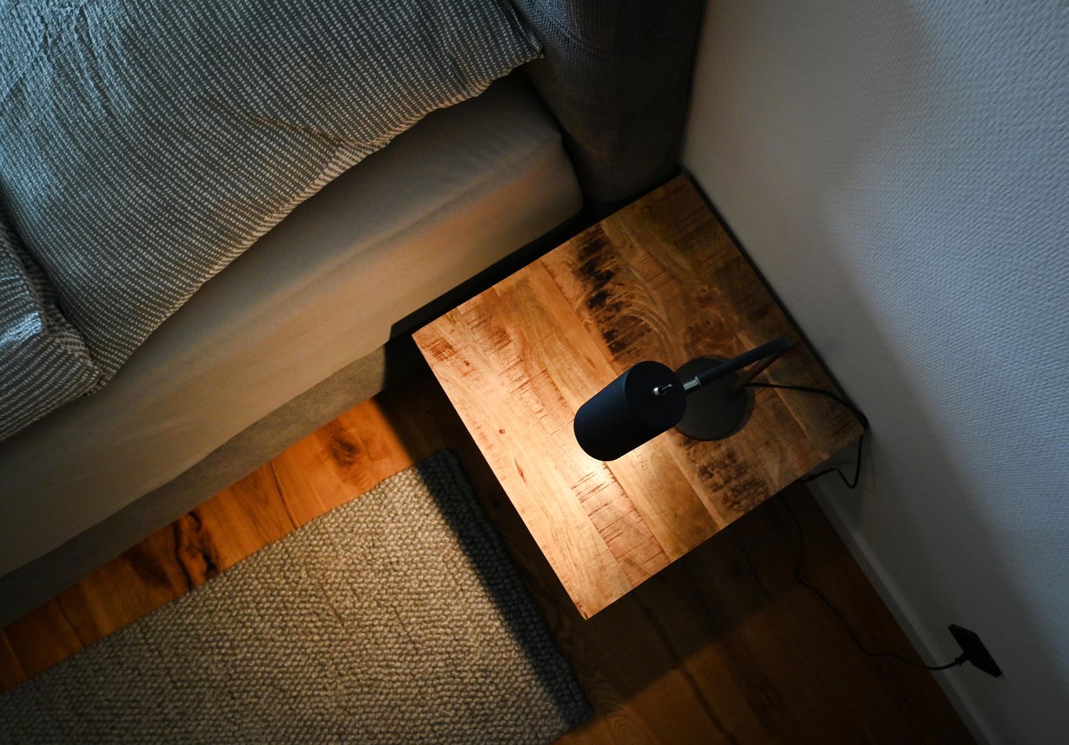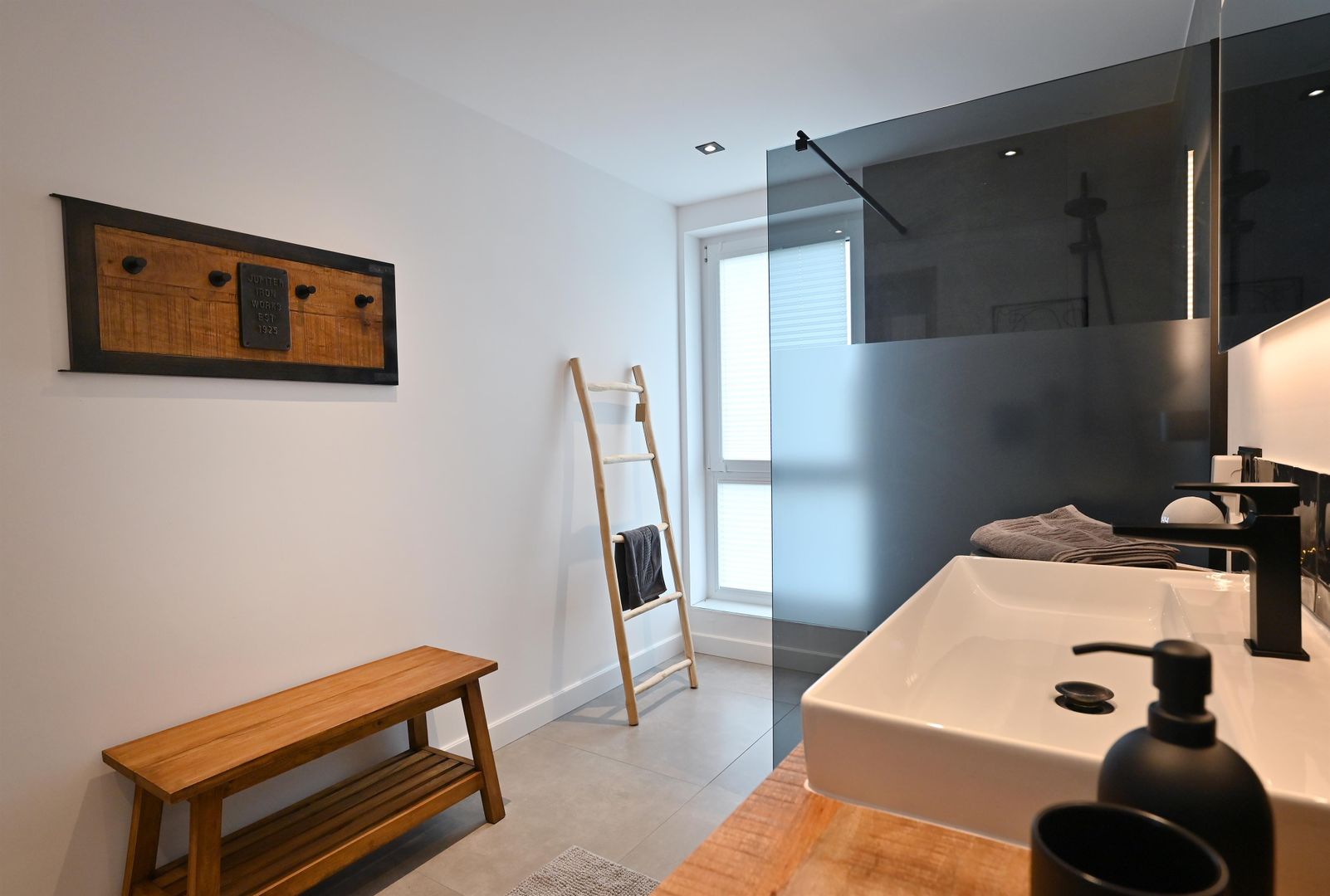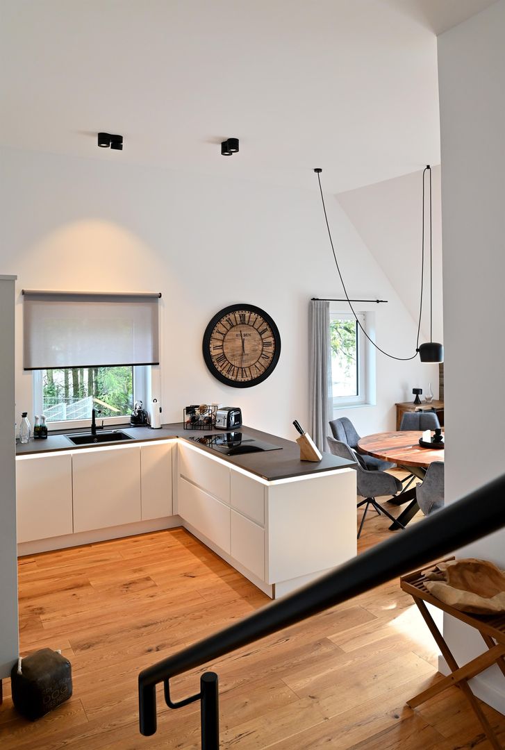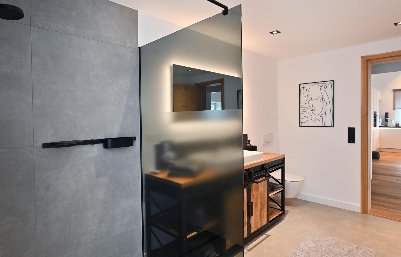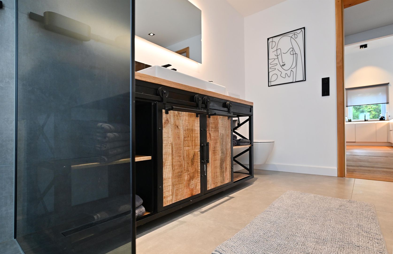 The modern kitchen invites you to cook extensively, the round dining table offers space for six people and is ideal for communal meals. Real wood floors and real wood doors give the flat a warm atmosphere. Practical amenities such as a washing machine and dryer are also available.
