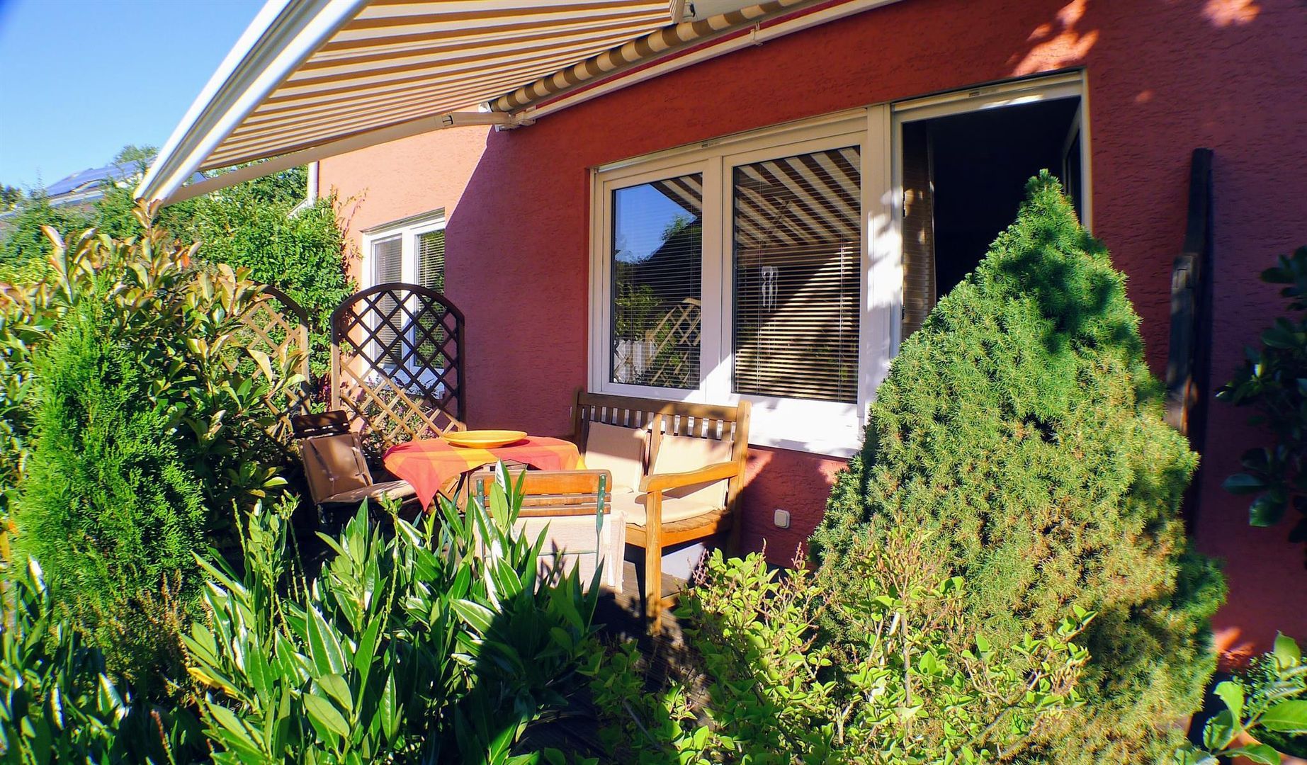 The apartment has a size of approx. 54 m². It is ideal for a maximum of 2 persons. The apartment is equipped with attention to detail and newly furnished. These are the best conditions for a pleasant stay. The apartment has its own entrance and a carport. The apartment is located in a prime and popular residential area. The house is close to the city center but still perfectly quiet.