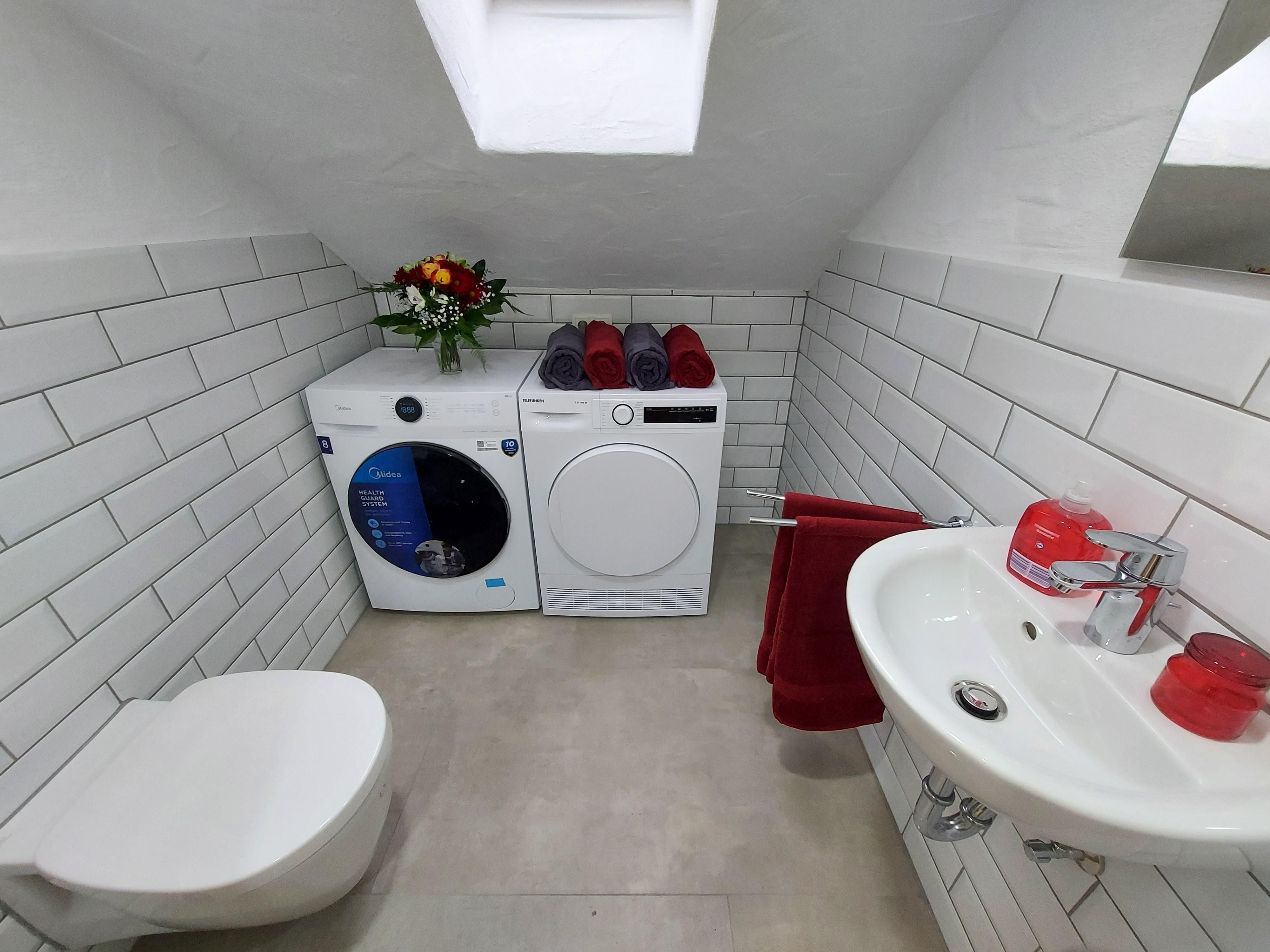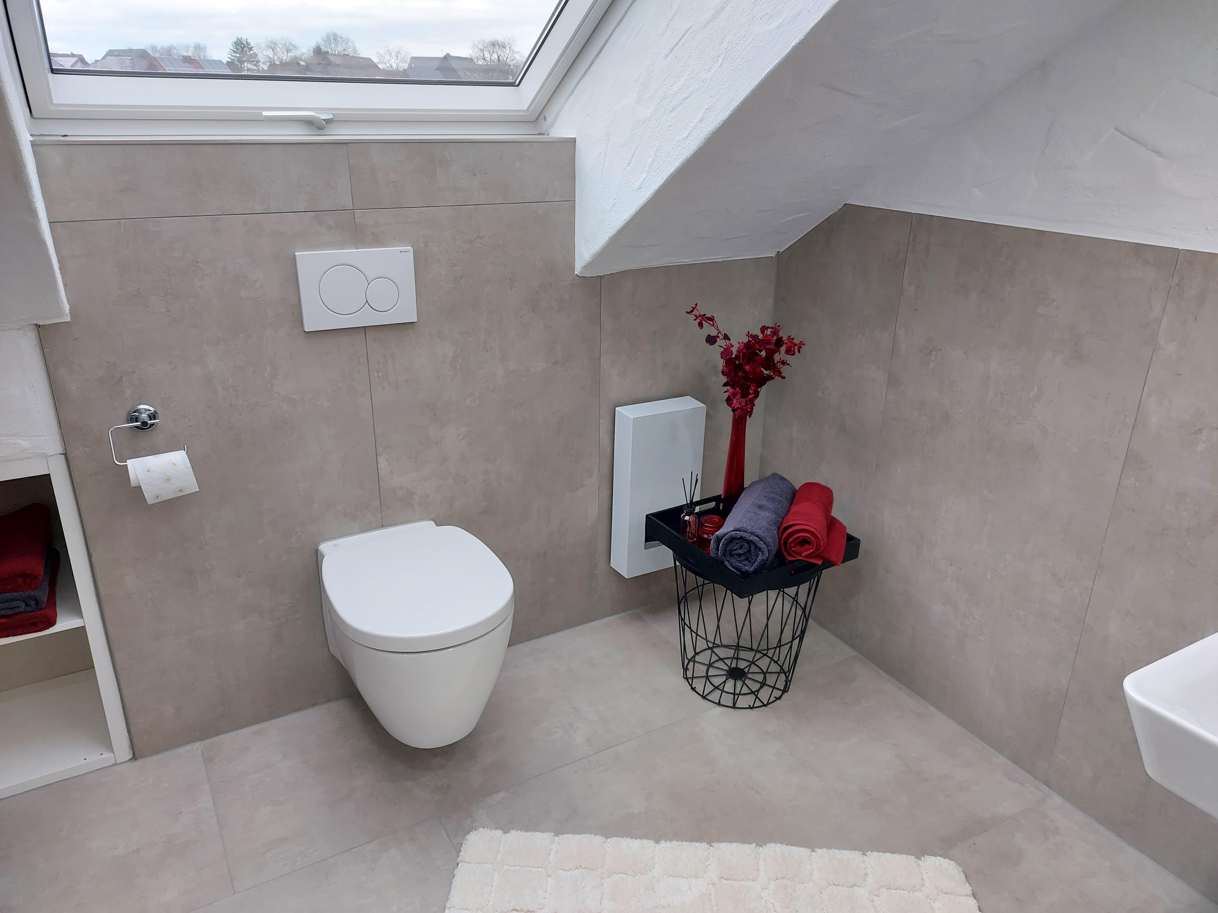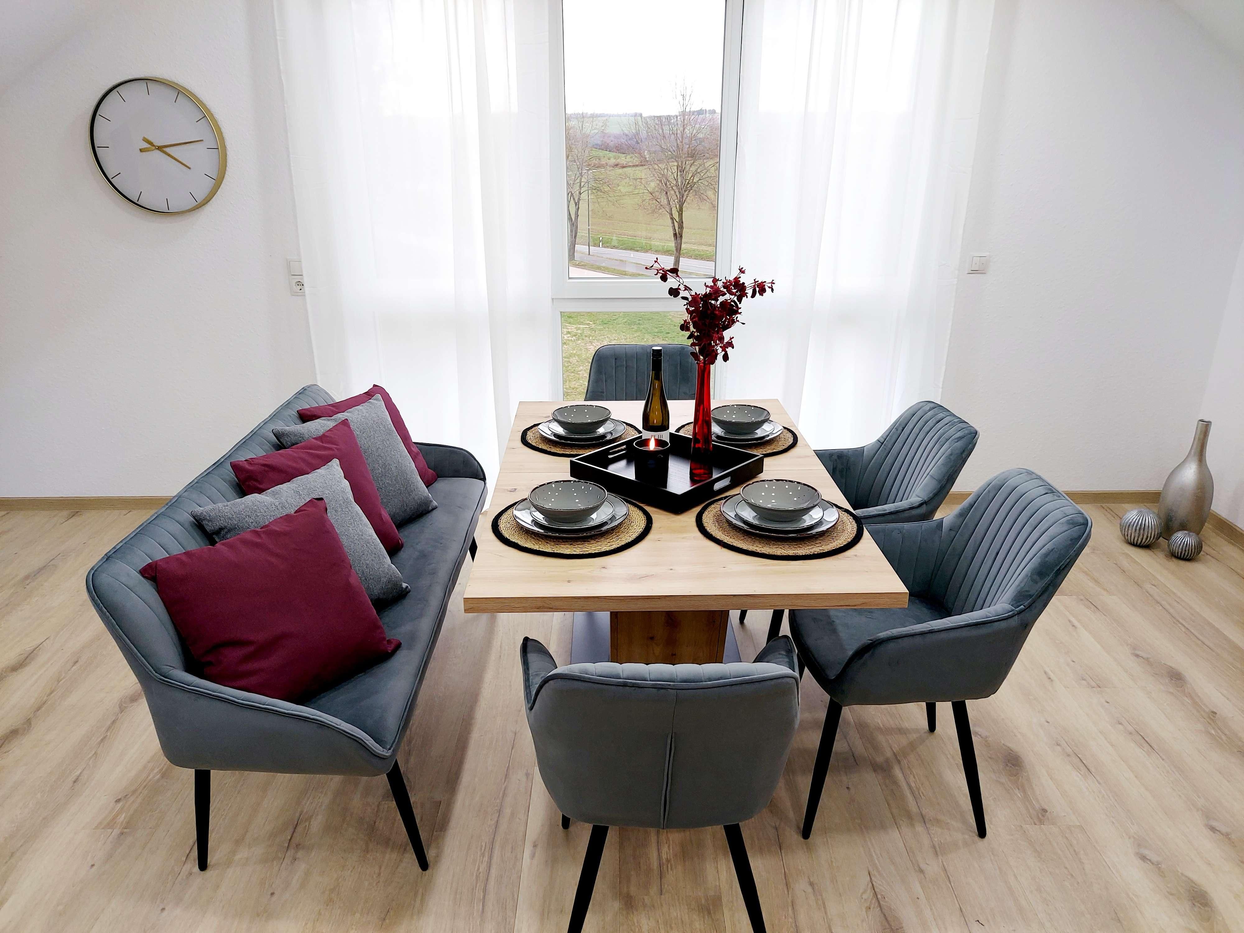 An inviting living/dining area with fully equipped kitchen and spacious lounge area invite you to relax. There is a modern bathroom with a walk-in shower and an extra guest WC with washing machine and tumble dryer. The balcony is south-facing and offers a wonderful view of the Eifel landscape.