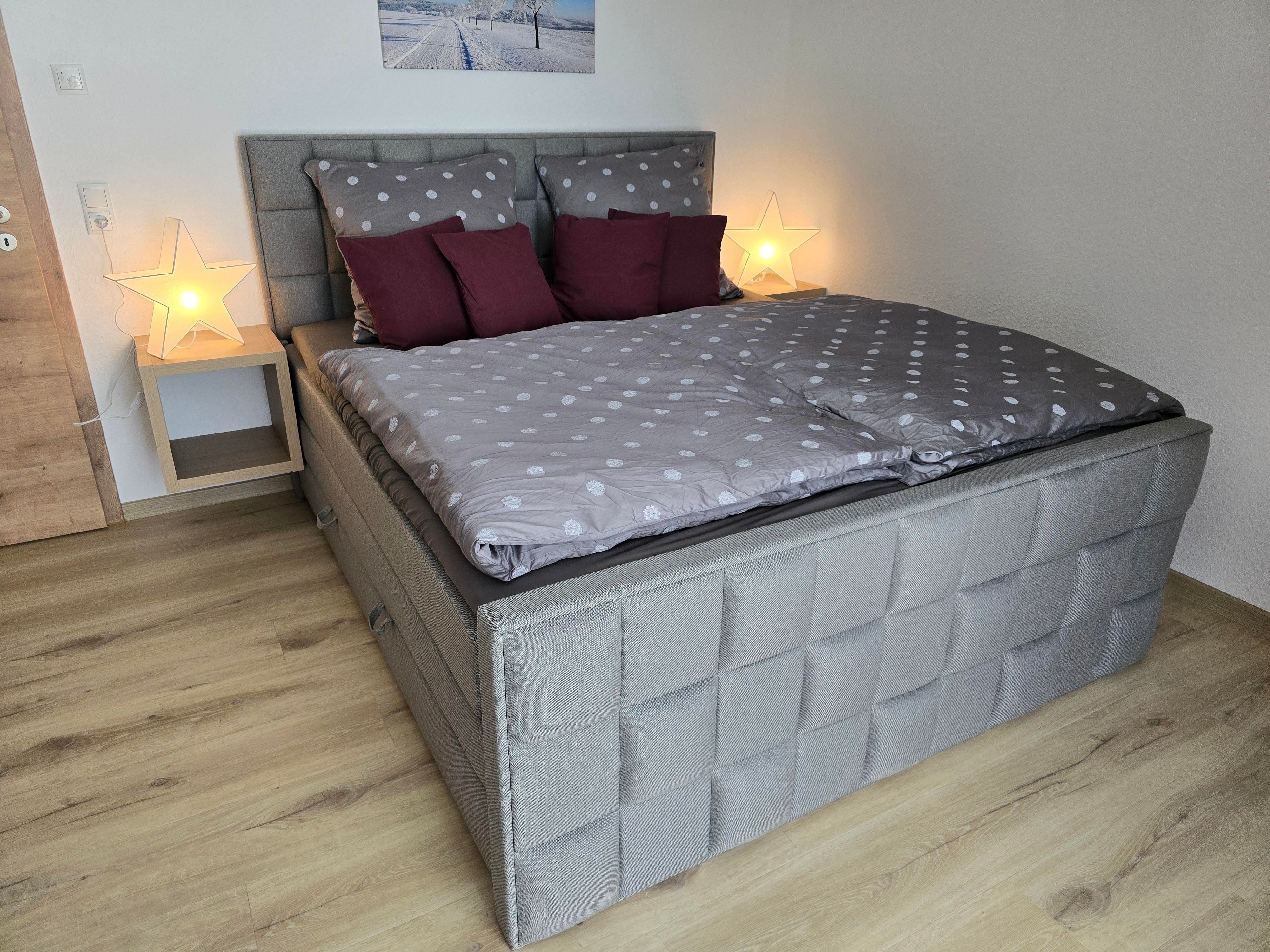 The generously proportioned Vulkaneifelchalet holiday flat offers 94 m² of living space with two fully equipped bedrooms with comfortable box-spring beds and flat-screen TVs.
