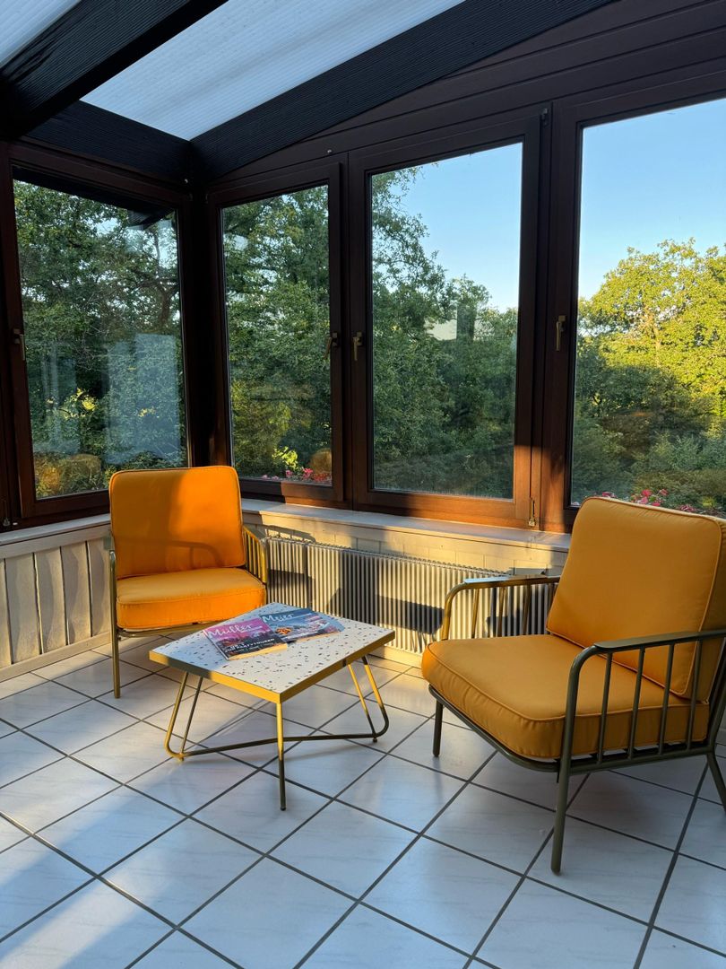 Experience pure nature on the Kylltalradweg! Our top-equipped ⭐⭐⭐⭐ holiday home with a beautiful view of the Kyll valley and space for a total of up to 10 people in the heart of the Vulkaneifel awaits you. Also for cinema evenings our selection of DVDs offers a good opportunity to relax from everyday life and spend time together. Located in the immediate vicinity of the Kylltalradweg, our house offers the ideal starting point for great bike tours through nature. For your two-wheelers, our spacious garage is available as a storage place, where you can also charge your e-bikes. Very spacious! With plenty of space for young and old. And in order to be able to enjoy bad weather relaxed, our play cellar or lounge room offers everything your heart desires. In addition to a table tennis table and dartboard, you will also find a table football and pool table. Our two book corners invite you to browse or choose dovj e.g. a board or card game in our large game collection in the living room. Hiking enthusiasts will not miss out either, as you can explore various hiking trails directly from our front door. Whether to the volcano Kahlem, the Goldberg or to the Birresborn ice caves with giant bench. Ideal for clubs, cycling or hiking groups, holidays with family & friends. Whether for a great getaway or the whole holiday. We look forward to your visit at Haus Eifelruhe.