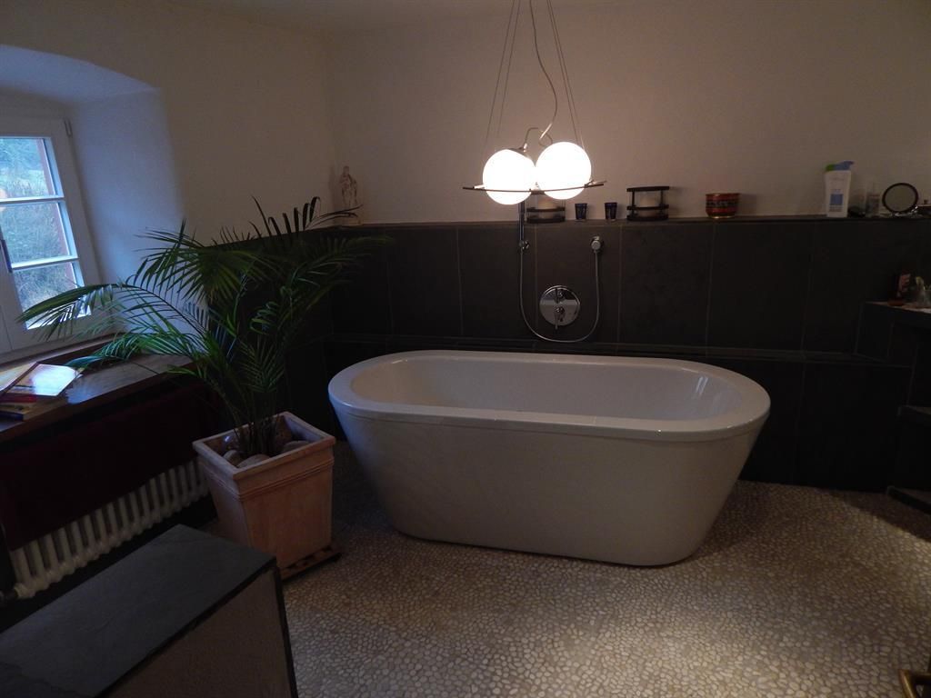 A lovely 300 year old farmhouse with a courtyard close to Hillesheim, a town approximately 95 km south of the city of Cologne. 4 individually designed rooms A small wine shop with extraordinary wines (up to 100 Parker points) and wine tasting events are possible Here you will find peace and quiet and you can relax in our sauna ( per unit € 15,00 - max 4 persons) or in our hottub - wooden heatable outdoor tub with 2000 liters of water (each unit € 40,00 ) There is also a beautiful courtyard and garden. A 100 sqm wooden terasse with a roof and a fantastic view into the countryside. It's a dream! very good and rich breakfast dinner possible (salade, main course and dessert) € 15,00 p.p.