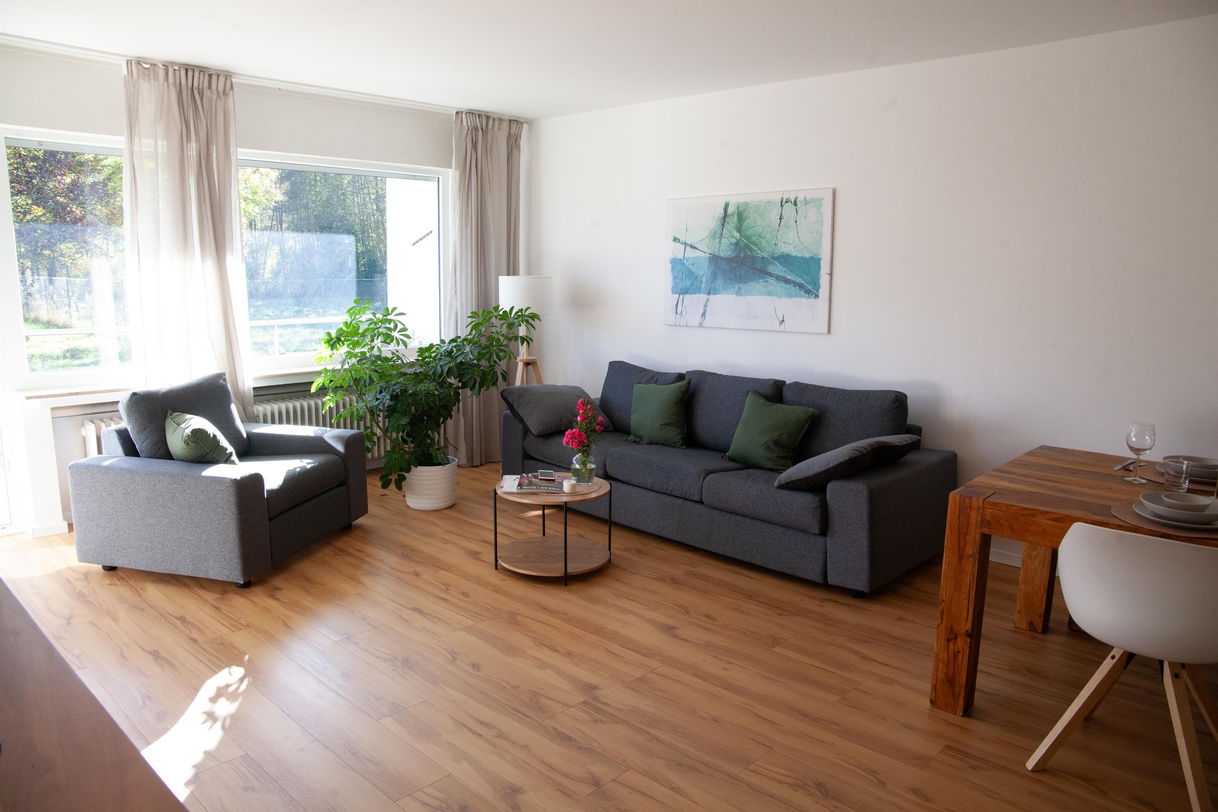 Our bright and lovingly furnished apartment offers space for up to four people and is perfectly equipped to ensure you have a comfortable stay. It has two spacious bedrooms, each with a large box-spring bed. A modern bathroom, a cozy living room and a fully equipped kitchen are also at your disposal. The large south-facing balcony is accessible from both bedrooms and the living room - the perfect place to start the day in peace or to relax in the evening and enjoy the view of the surrounding meadows and forests.Gemünd, an idyllic district of Schleiden in the Eifel National Park, offers an ideal setting for nature lovers. Surrounded by forests and valleys, Gemünd is a perfect starting point for hikes and cycle tours, for example on the Eifelsteig trail. The nearby Urftsee and Rursee lakes are ideal for water sports activities and boat trips. Sights such as the historic Vogelsang Castle and Schleiden Castle offer cultural insights. The town center of Gemünd attracts visitors with cozy cafés and regional specialties. Excursion destinations such as Monschau, Bad Münstereifel and the Hellenthal wildlife park enrich your stay. In addition, a detailed information folder with all the excursion options and valuable tips is available in the vacation apartment to make your stay even more varied.