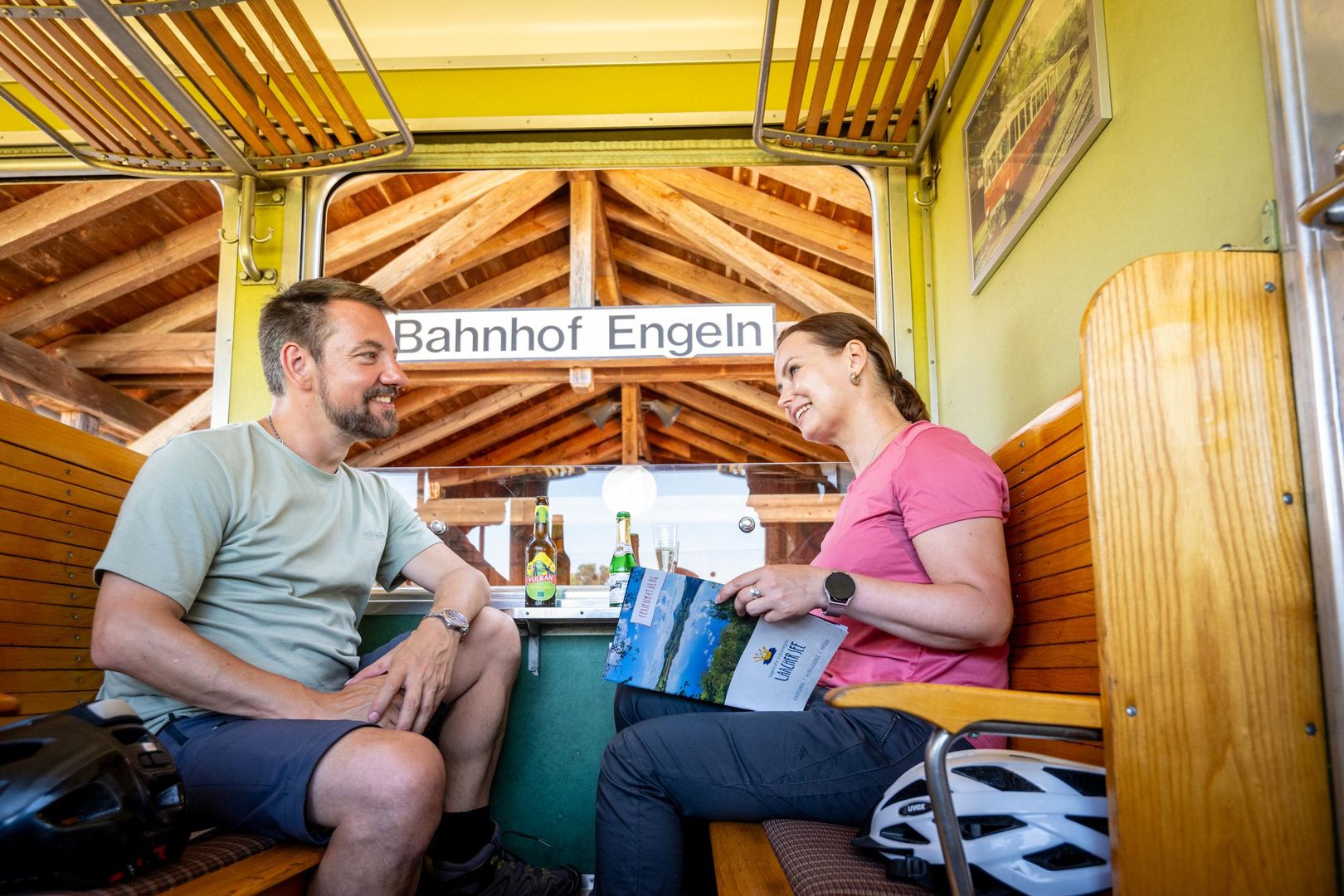 Los geht es ab dem Brohltalbahnhof in Brohl um 10:15 Uhr und 14:15 Uhr, ab Engeln um 11:50 Uhr und 16:30 Uhr. Die genauen Fahrzeiten für die Zwischenbahnhöfe können im Internet unter www.vulkan-express.de abgefragt werden.