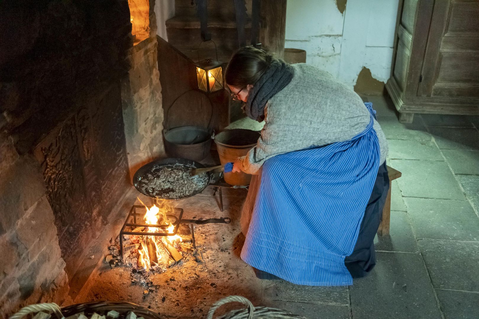 Aus den Museumsbacköfen strömt der Duft von Bratäpfeln, Spekulatius und Printen, die frisch vor den Augen der Gäste zubereitet werden. Ebenso lecker duften heiße Maronen, Honigkuchen und Feuerzangenbowle, die Hauswirtschafterinnen in den niederrheinischen Gehöften anbieten. Für ein einzigartiges Erlebnis sorgen auch die vielen unterschiedlichen Handwerker, die ihre klassischen Fertigkeiten präsentieren: Sehen Sie, wie ein Besen gebunden wird, wie ein Schmied Werkzeuge herstellt oder ein Holzschnitzer sein Holz bearbeitet. Besonders stimmungsvoll wird es bei den Laternenführungen, die das Museumsgelände in warmes Licht tauchen. Auf dem kleinen Adventsmarkt im und vor dem Pingsdorfer Tanzsaal finden Sie schließlich Täschner, Buchbinder, Handgestricktes, frisch gebundene Adventskränze und andere Kostbarkeiten.