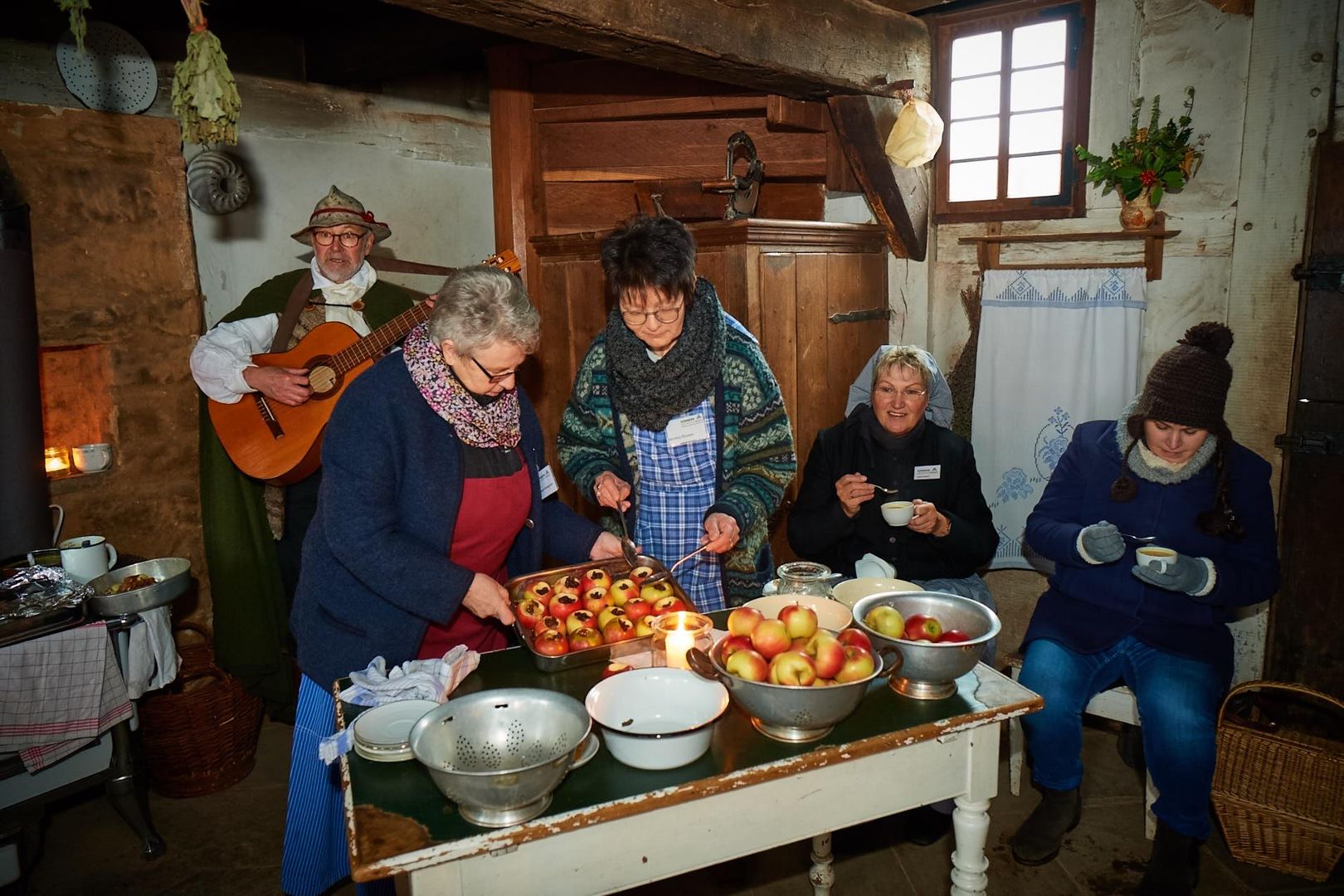 Die Besucher können hier nachempfinden, wie bäuerliche Familien sich auf Weihnachten vorbereitet haben. In den Bauernstuben der Museumshäuser erklingt vorweihnachtliche Hausmusik, die zum gemeinsamen Singen anregt. Das gesamte Museum und die historischen Häuser sind mit natürlichen Lichtquellen und Laternen in ein gemütliches Licht getaucht und es werden traditionelle Geschichten erzählt. Auch in der alten Kapelle stimmen Gäste gemeinsam mit der „Bäuerin“ Adventslieder an. Kinder haben in der Bastelstube die Möglichkeit, Weihnachtsschmuck und kleine Geschenke herzustellen. Die Großen können sich unterdessen in der alten Dorfschule an traditioneller Schönschrift für ihre Weihnachtskarten üben.