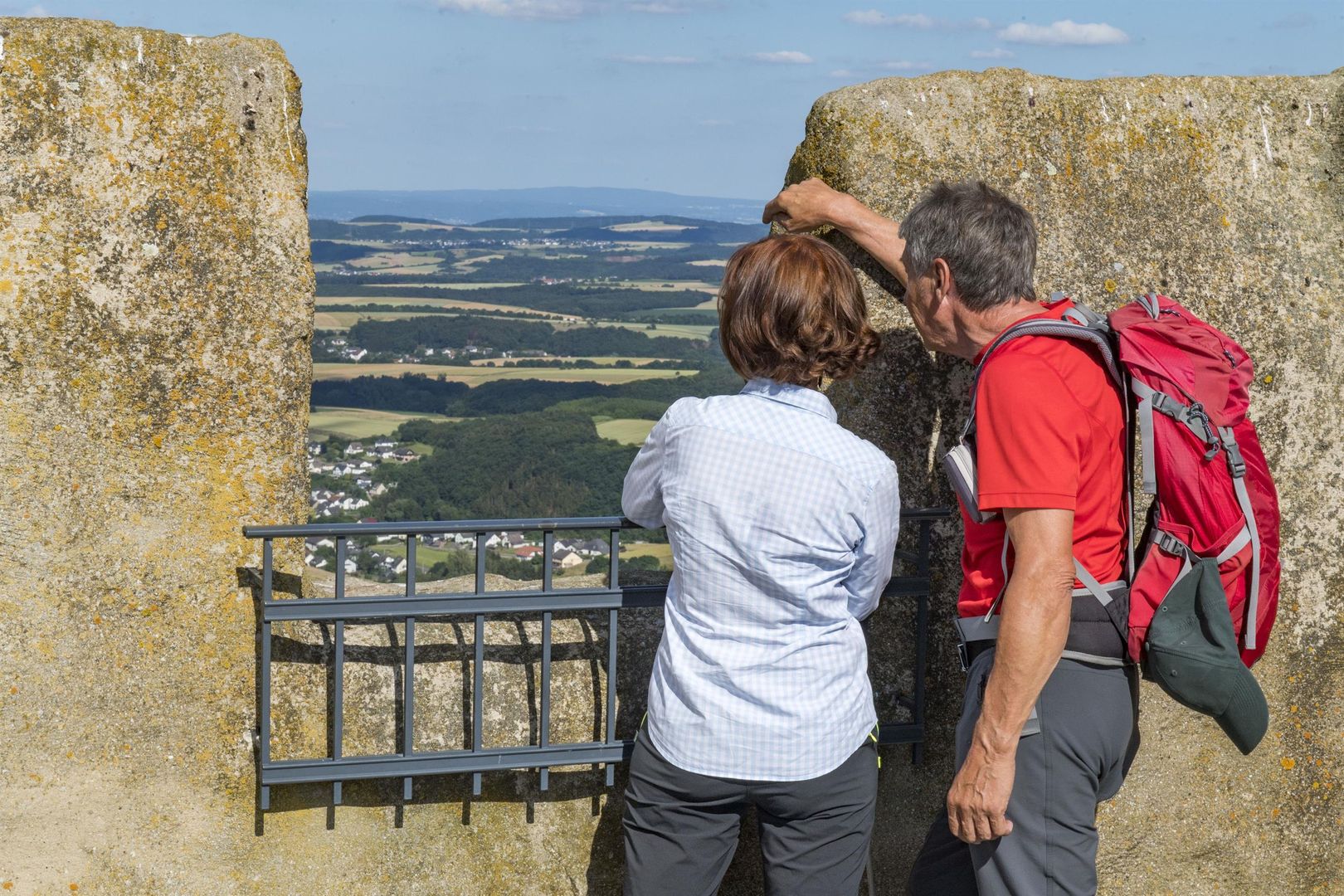 Burgführung auf Burg Olbrück Ein qualifizierter Burgführer begleitet die Besucher über die Burganlage und bringt Ihnen die Zeitreise vom Vulkanismus zum Rittertum anschaulich nahe.