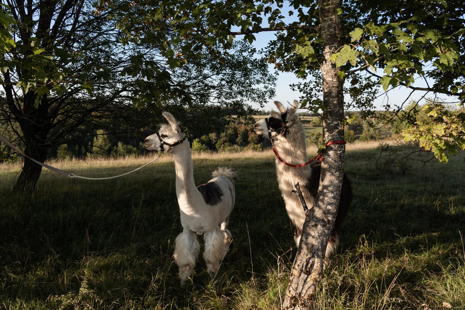 pro Alpaka- Lamaführer:in kann maximal eine Begleitperson hinzugebucht werden