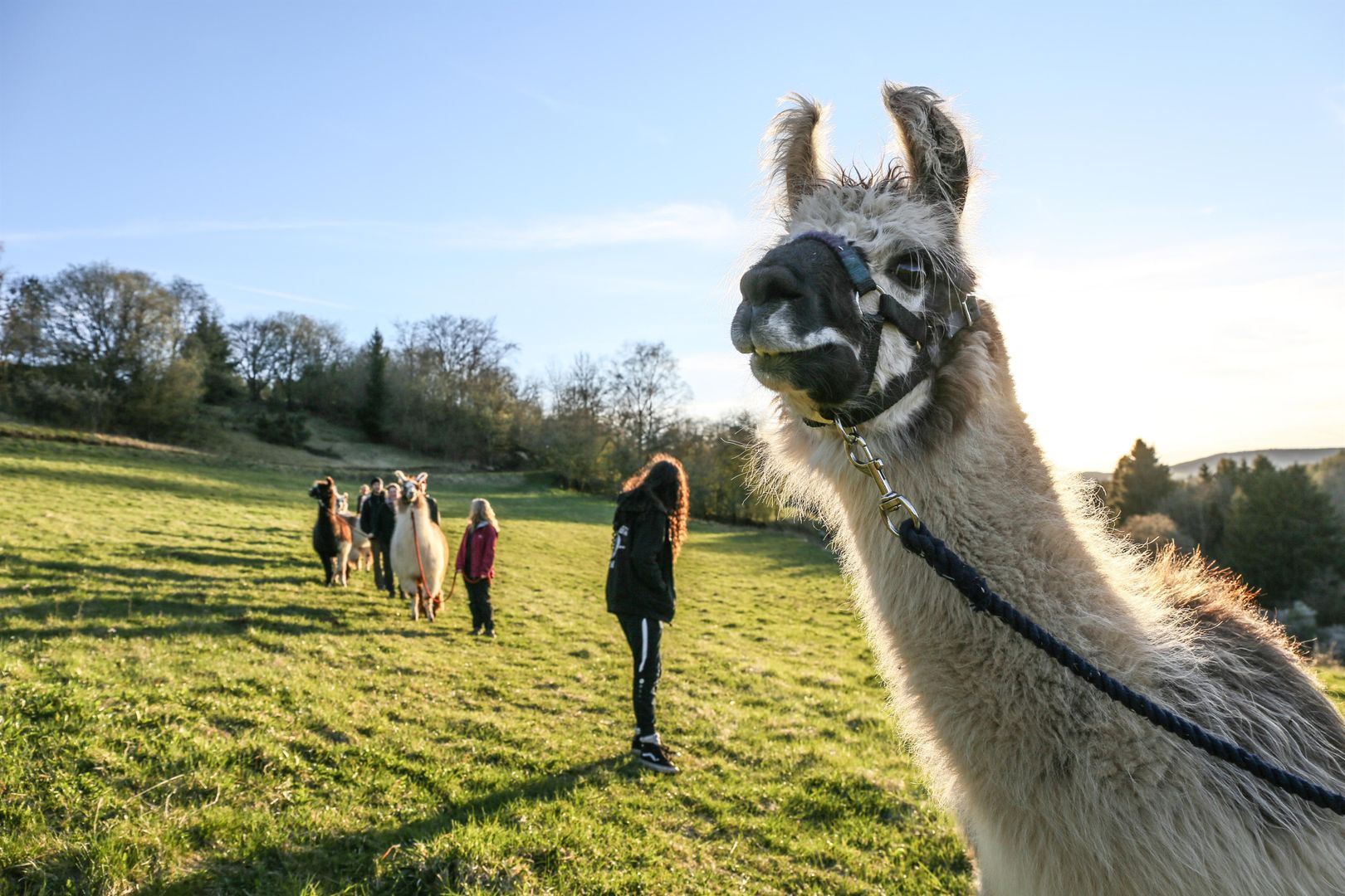 pro Alpaka- oder Lamaführer:in kann maximal eine Begleitperson hinzugebucht werden