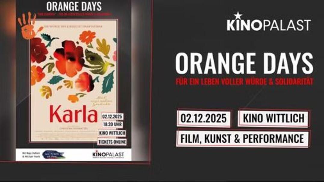 Am 02.12.2025, ab 18.30 Uhr laden wir im Kinopalast Wittlich zu den Orange Days ein. Gemeinsam setzen wir ein Zeichen gegen Gewalt an Frauen und Mädchen. Seht den Film „Karla“, begleitet von einer Kunst-Ausstellung und einer musikalischen Performance von Maja Hehlen & Michael Frank.