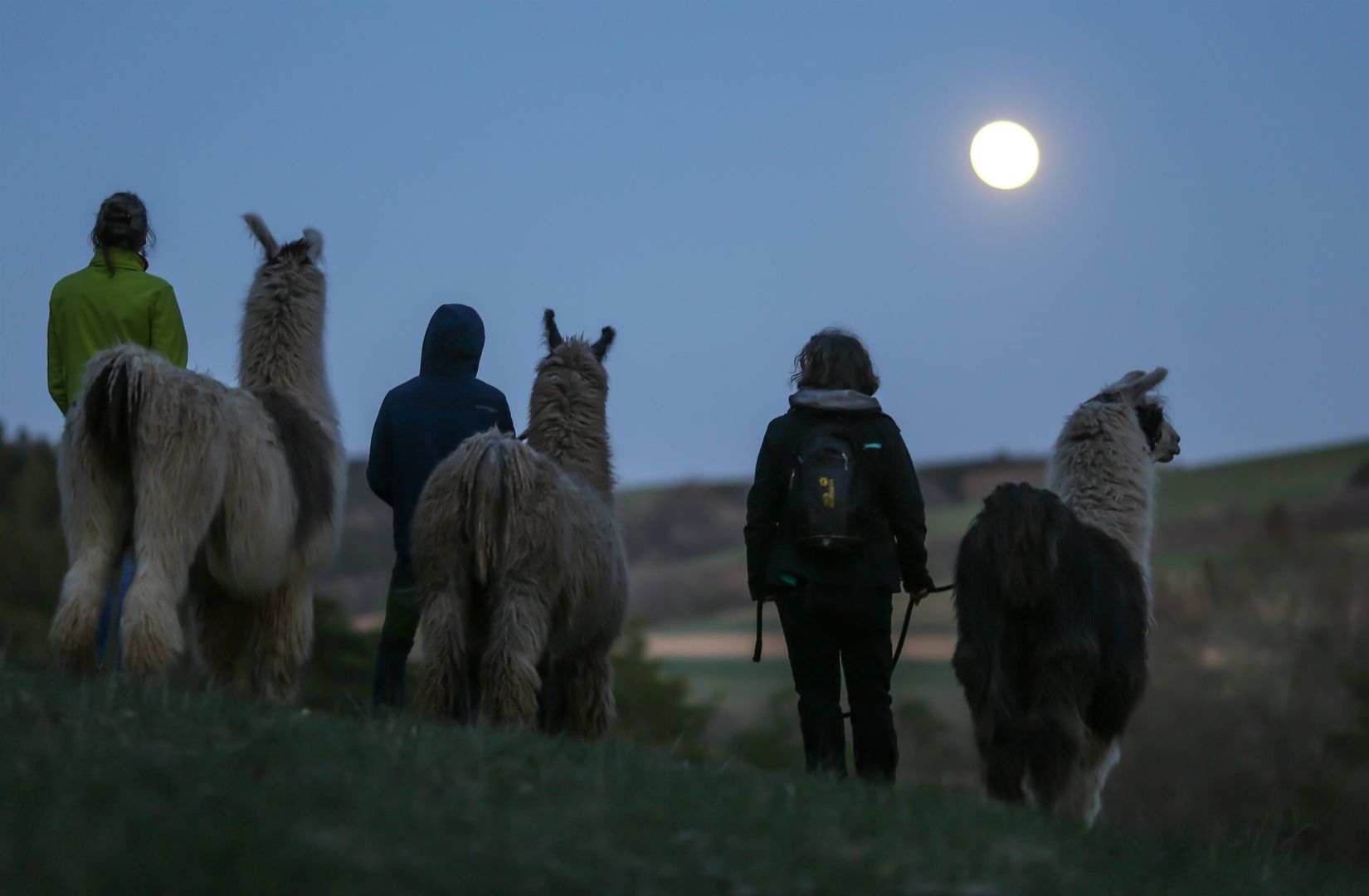 Nachtwanderer können sich zu Frühlingsbeginn Ende März auf eine erste Vollmondwanderung freuen. Auch zum Erntemond im August, zum Nebelmond im November und zum Julmond im Dezember kurz vor Weihnachten werden wir mit den Lamas durch die Nacht ziehen und unseren Weg vom Mond ausleuchten lassen.