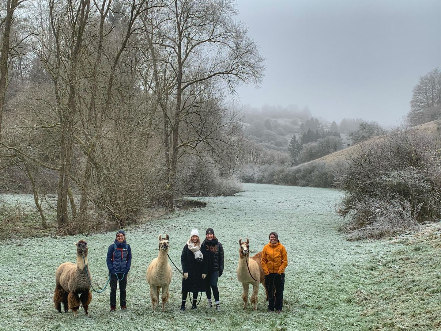 Weitere Informationen/ Anmeldung und Preise unter Lama-Wanderung zur Winterzeit (Gruppentour).