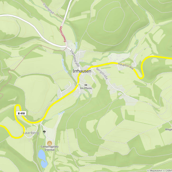 Von hier aus führt die rund 5 Kilometer lange Wanderstrecke entlang der Irsen durch das malerische Irsental bis zur Olmscheider Brücke. Dort ist eine kleine Stärkung eingeplant. Anschließend geht es auf der gegenüberliegenden Seite der Irsen zurück zum Gasthaus „Im Pfenn“, wo eine gemütliche Einkehr vorgesehen ist.