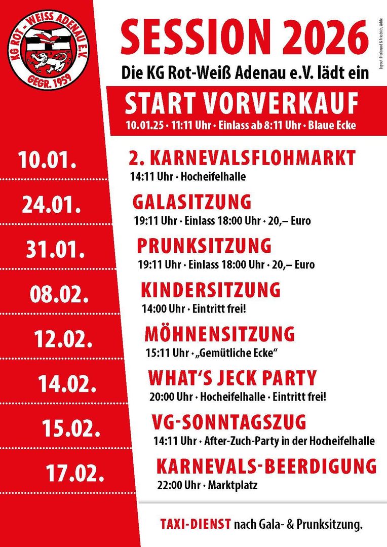 Schon seit langer Zeit ist in Adenau der Karnevalsdienstag der Tag des Kneipenkarnevals. Kostümierte ziehen bereits am späten Nachmittag durch die Kneipen und feiern den letzten Tag des Karnevals. Der jecke Brauch der Karnevalsbeerdigung beginnt um 22:00 Uhr, er hat seine Wurzeln aus den 70er Jahren.