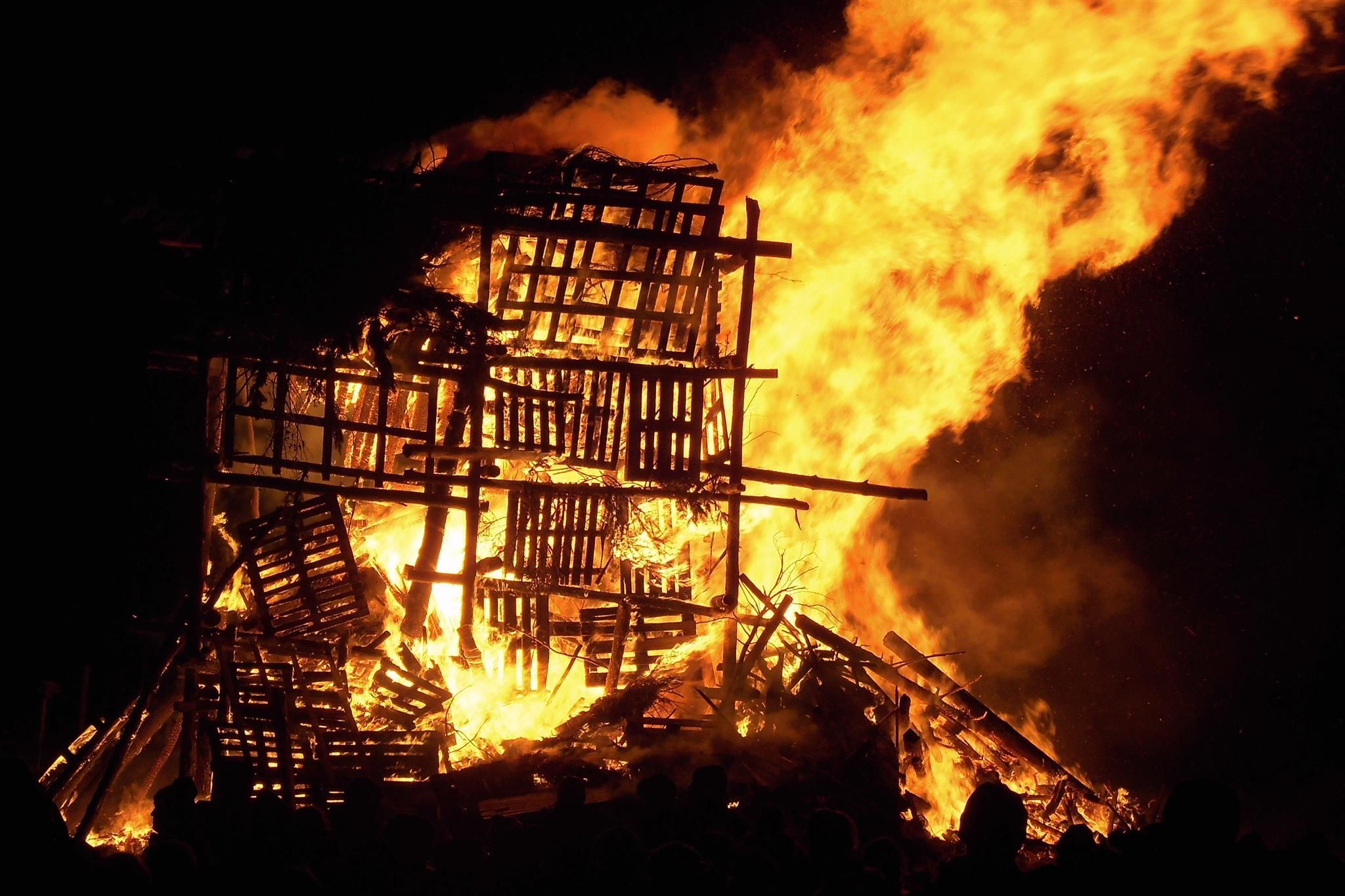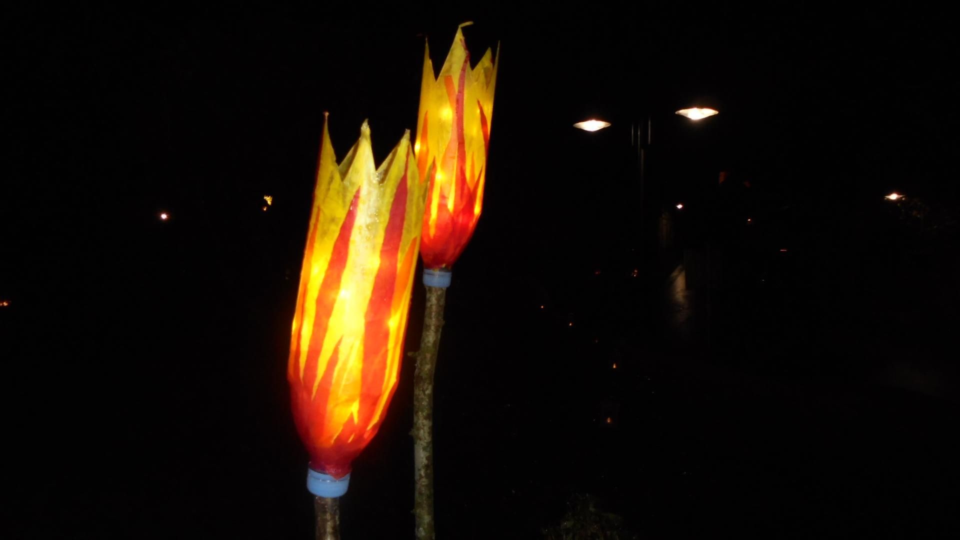 MIt bunen, leuchtenden Laternen und Musik geht es im Anschluß duch den Ort zum Martinsfeuer.