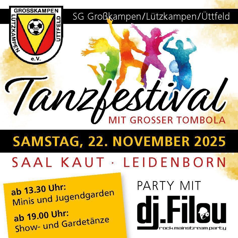 Die SG Großkampen/Lützkampen/Üttfeld veranstaltet auch in diesem Jahr wieder das Tanzfestival im Saal Kaut. Einige Tanzgruppen sind in Leidenborn zu Gast und zeigen Show- und Gardetänze.