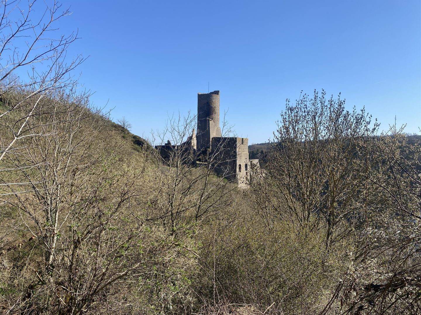 Majestätisch thronen die Löwen- und die Philippsburg über dem mittelalterlichen Fachwerkort Monreal -unterwegs mit dem Eifelverein Daun