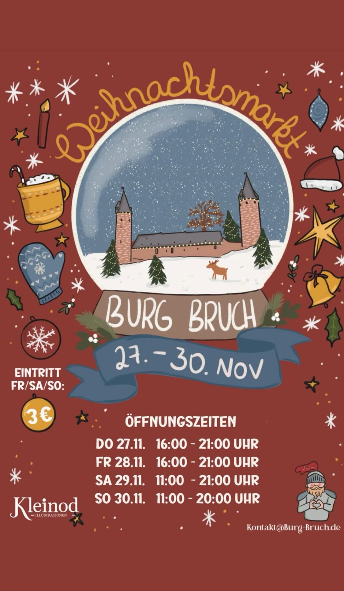 Freuen Sie sich auf den Weihnachtsmarkt der Burg Bruch vom 27. November bis zum 30. November 2025.