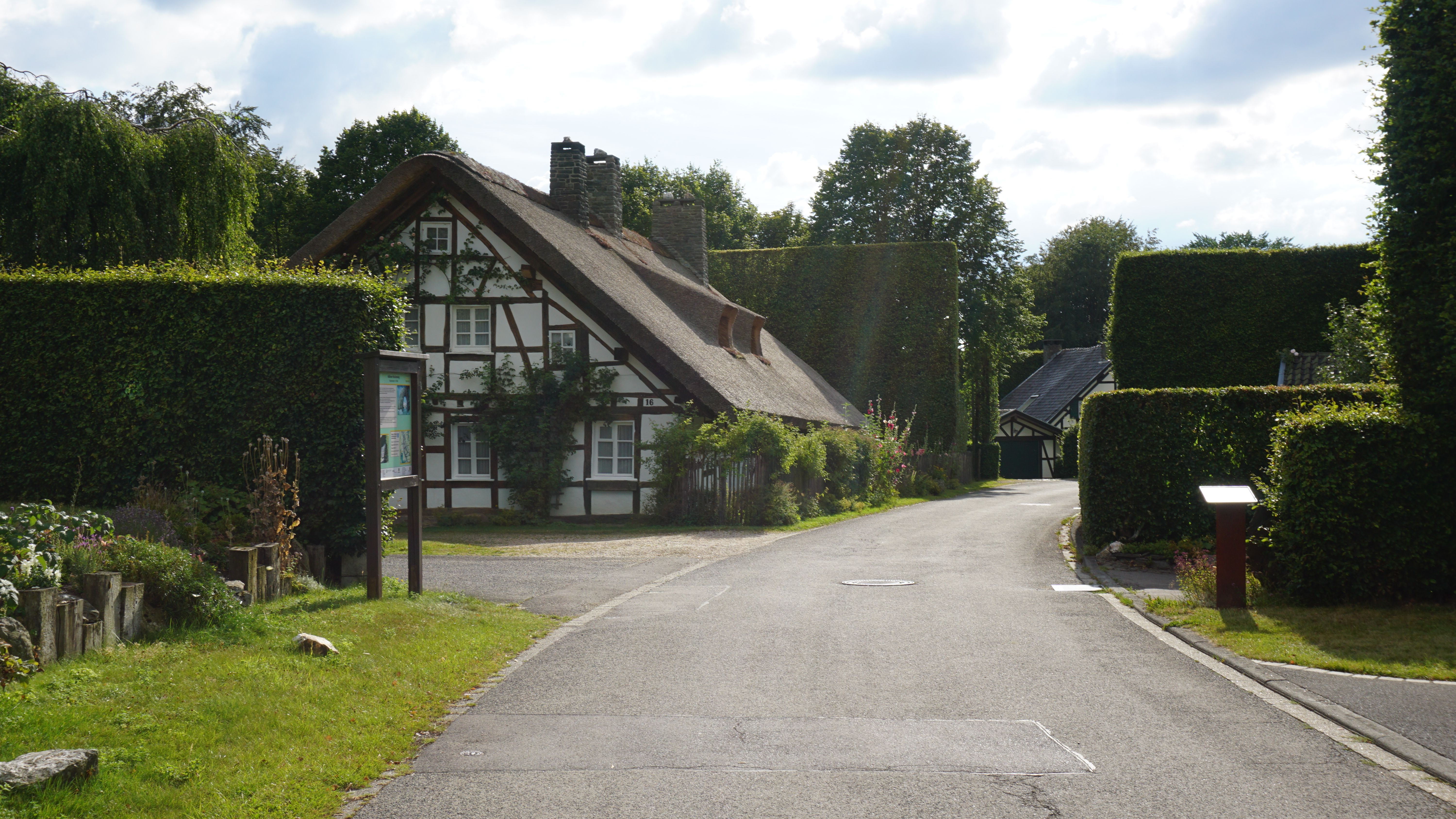 Tu continues à suivre le chemin à travers le parc thermal en direction de Burgau, où la dernière entreprise textile active à Monschau a fermé ses portes en 1983, jusqu'à ce que tu arrives au prochain point de vue : l'Engelsley. Ici, tu seras récompensé par une vue magnifique sur la vallée de la Roer et du Perlenbach et tu pourras vraiment te détendre. En dessous de la Ley (= rocher d'ardoise), on extrayait autrefois l'ardoise de toiture sous terre.