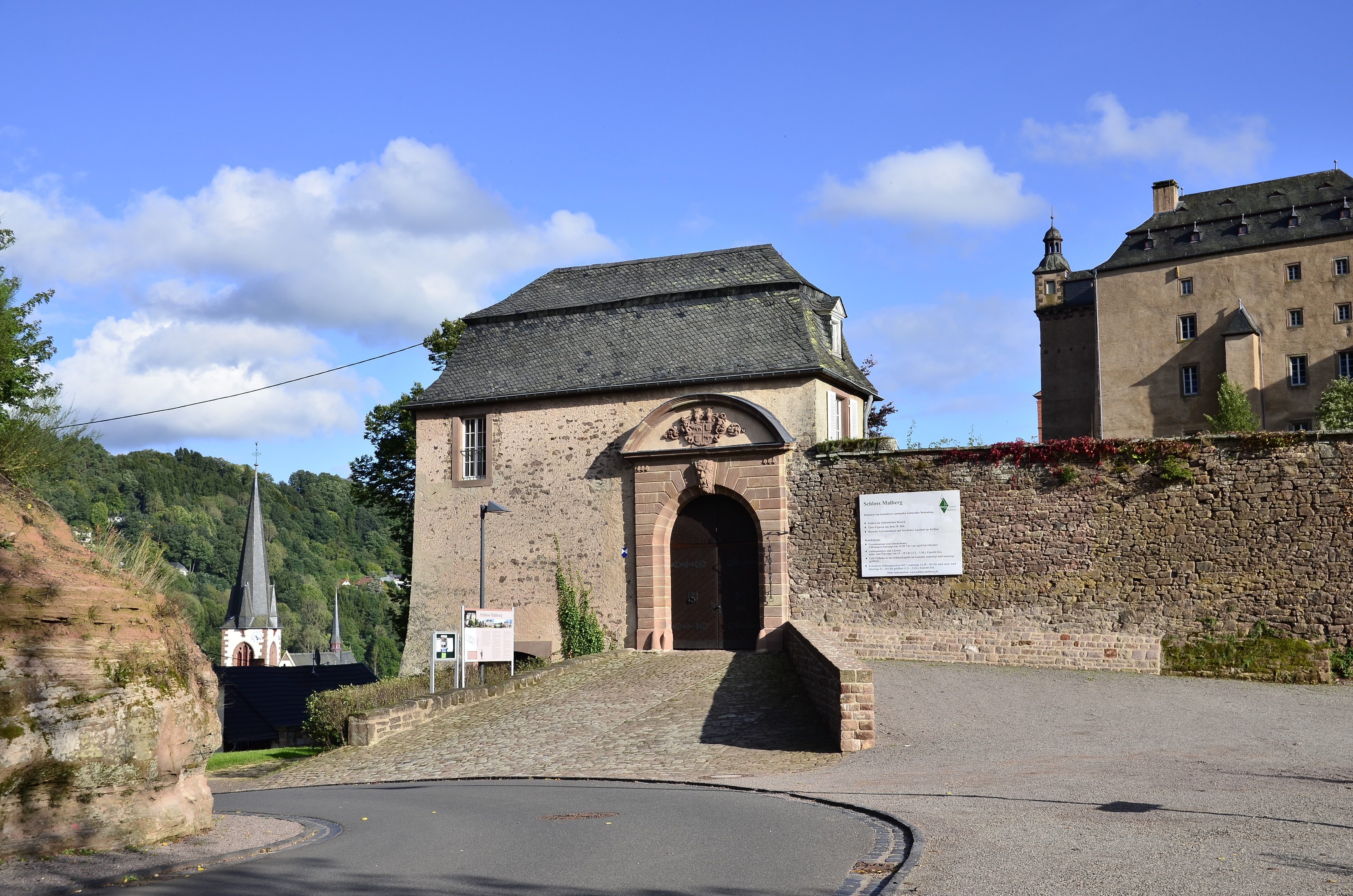 Le château de Malberg, unique en son genre, se compose de la Nouvelle Maison, de l'Ancienne Maison, du bâtiment à arcades, de la brasserie et de la chapelle. Le "jardin de fer" et le "jardin rond" font également partie du château situé sur un éperon de montagne.