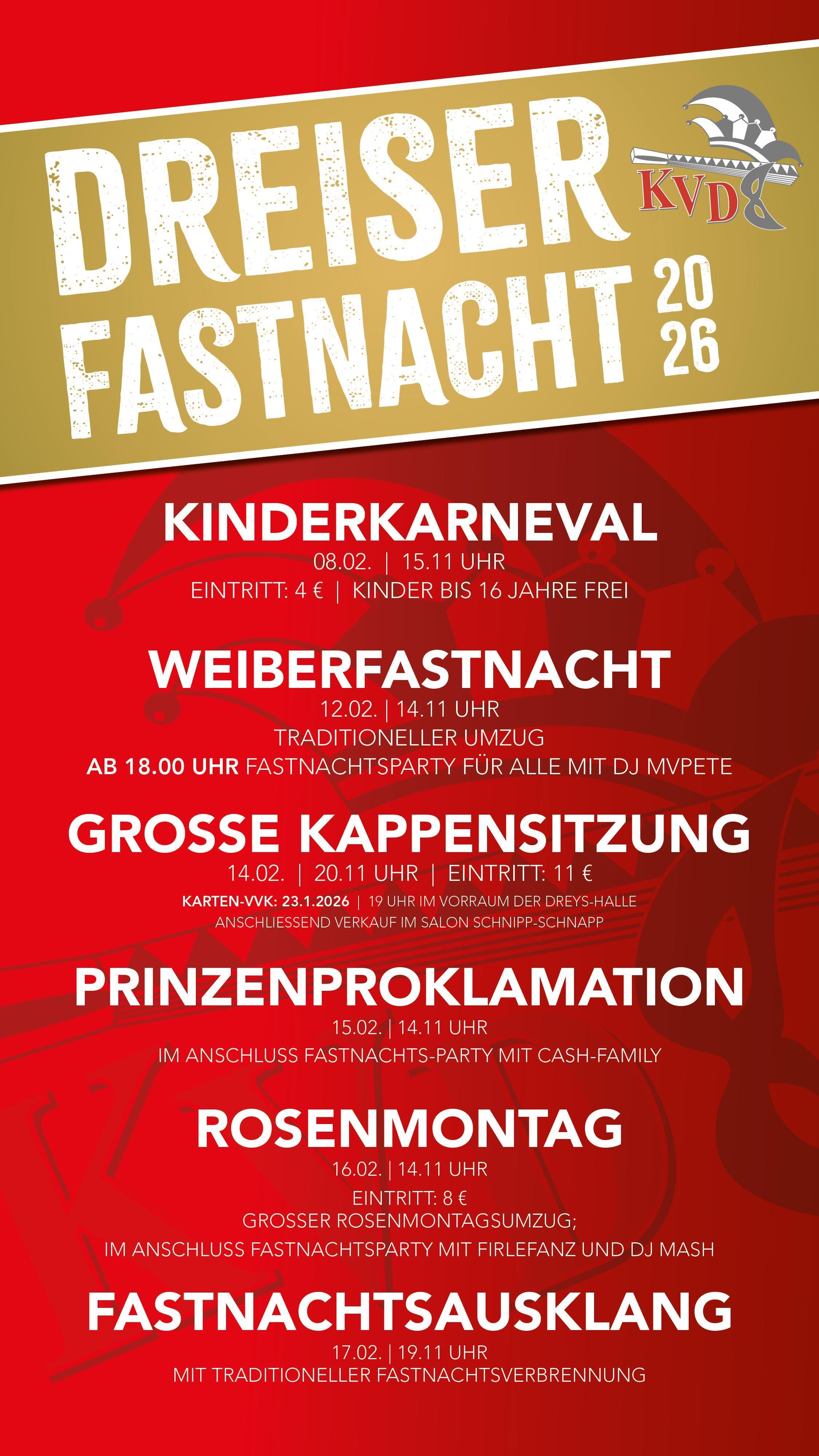 Programme des fêtes de carnaval 2024 de l'association carnavalesque Dreis 1976 e.V.