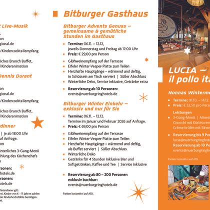 Réservation à partir de 10 personnes : events@nuerburgringhotels.de