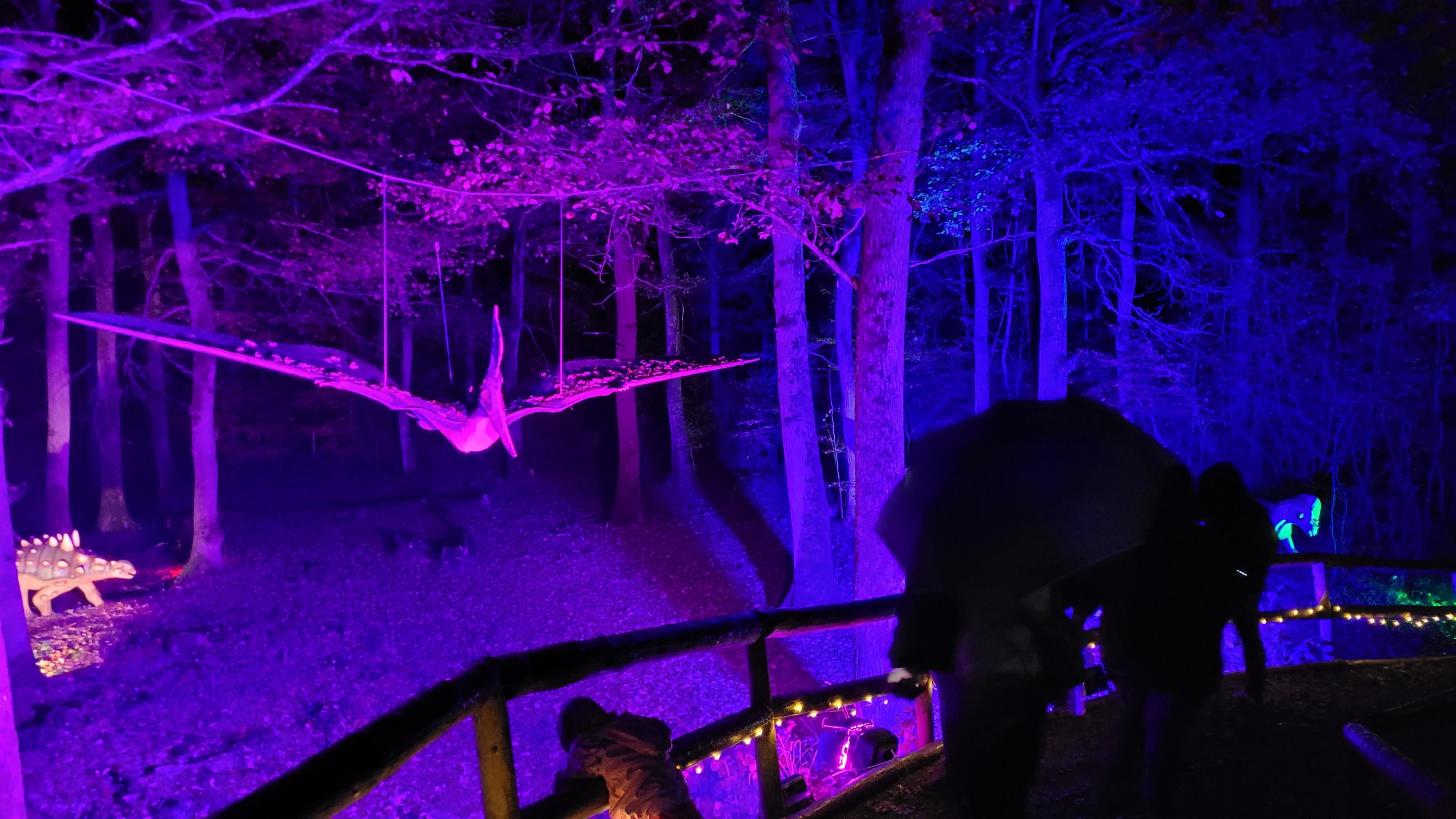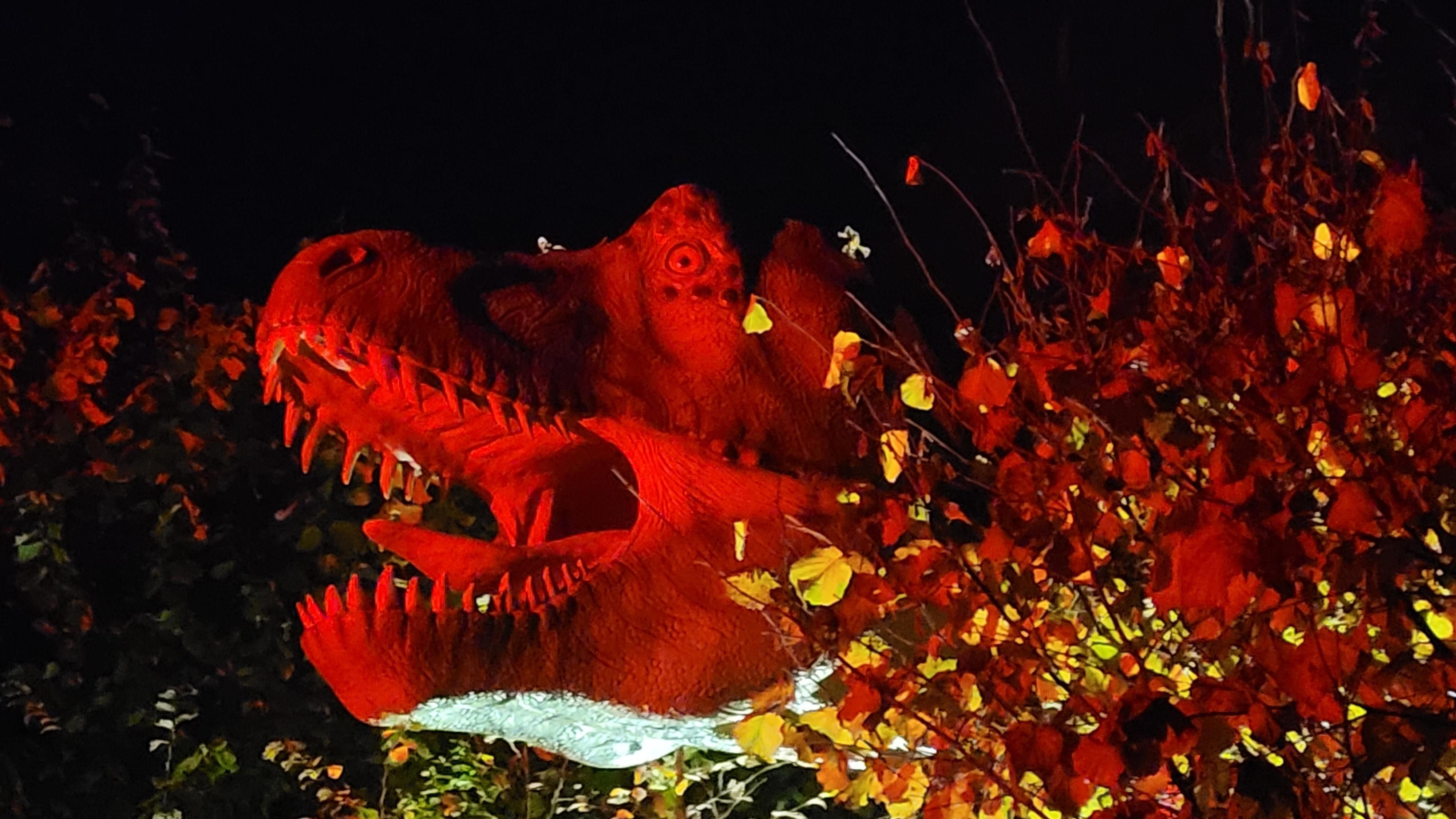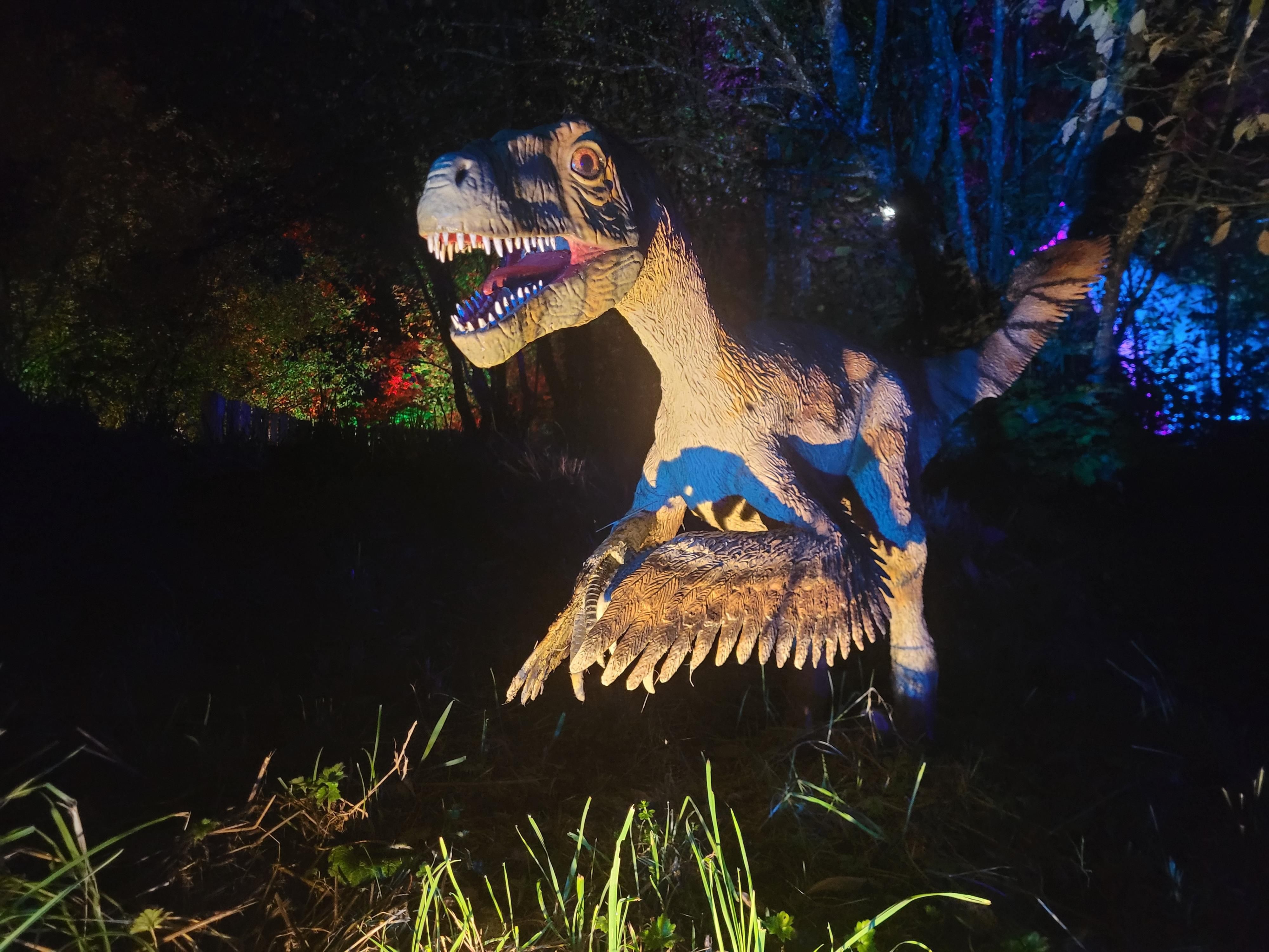 Dans l'obscurité, le parc se transforme en un lieu magique : baignés dans la lumière colorée et mis en scène de manière spectaculaire, des animaux et des scènes de toutes les ères géologiques apparaissent de manière mystérieuse et mystique.