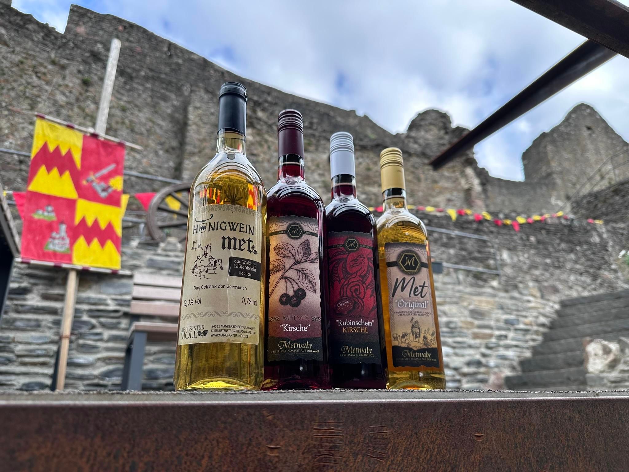 Plonge dans un monde de plaisirs & d'histoire et vis une dégustation unique de fromage-met dans le décor médiéval du château bas de Manderscheid ! Ce qui t'attend : 6 fromages de chèvre de choix de la célèbre ferme Vulkanhof de Gillenfeld. 4 sortes d'hydromel particulières - du classique au fruité & aux noix Histoires du château & des comtes de Manderscheid - Vivez le passé de près ! Ambiance médiévale dans les murs historiques du château. Du pain frais pour accompagner parfaitement la dégustation